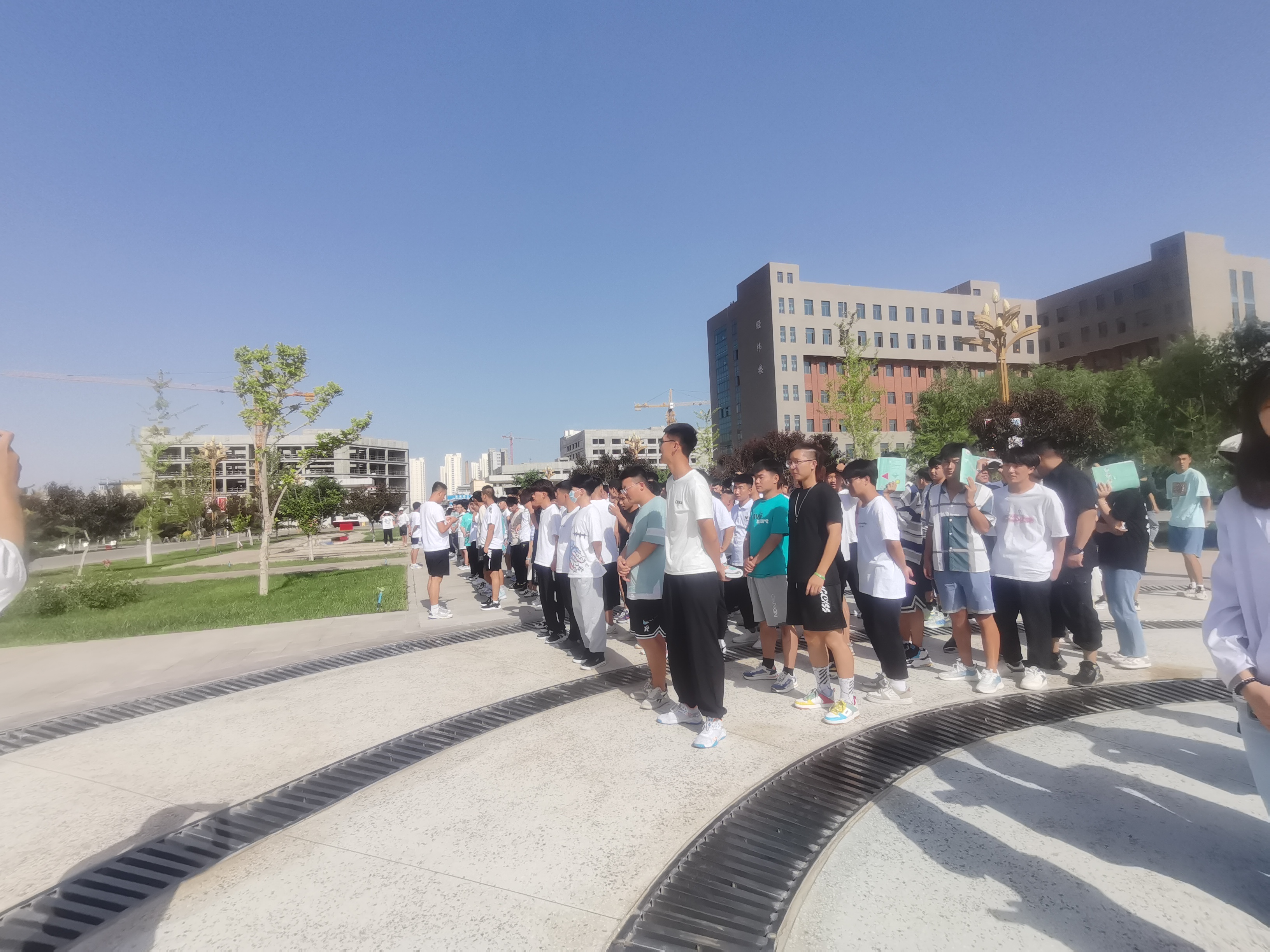 6月24日下午4點(diǎn)46分,學(xué)校應(yīng)急疏散演練正式開始。隨著消防警報(bào)響起,上課教師立即停止上課組織學(xué)生疏散,學(xué)生用毛巾捂住口鼻,在學(xué)工人員的指揮下,按照逃生路線迅速有序疏散。在5分鐘內(nèi),8000多名師生全部按指要求撤離到指定區(qū)域集合,演練取得圓滿成功。