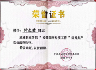 經個人申報、學院推薦、學校審核,我院仲文君同志榮獲“疫情防控專項工作”優(yōu)秀共產黨員榮譽稱號,李玉榮同志榮獲“雙高計劃建設項目專項工作”優(yōu)秀共產黨員榮譽稱號,申賓德同志榮獲“申辦本科層次職業(yè)學校專項工作”優(yōu)秀共產黨員榮譽稱號。