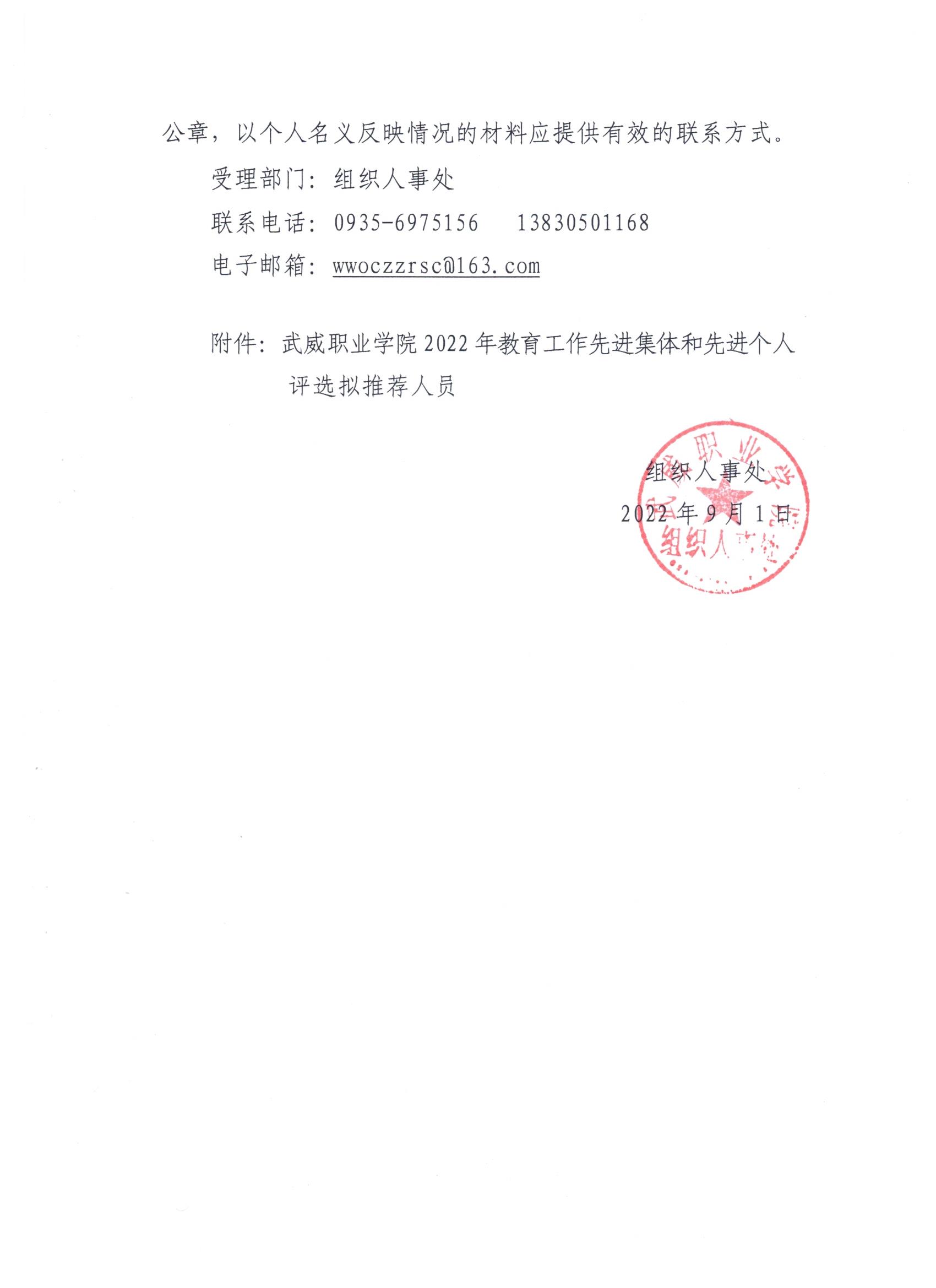 關(guān)于對學校2022年教育工作先進集體和先進個人評選對象結(jié)果的公示