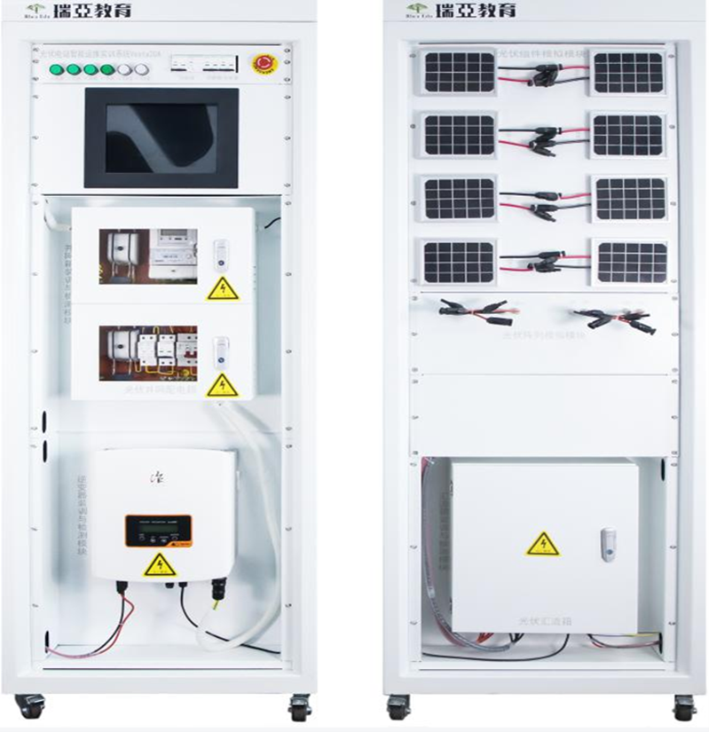 光伏電站智能運維實訓平臺主要有光伏組件模塊、光伏陣列模塊、匯流箱裝調與檢測模塊、逆變器裝調與檢測模塊、并網箱裝調與檢測模塊、運維采集模塊組成。