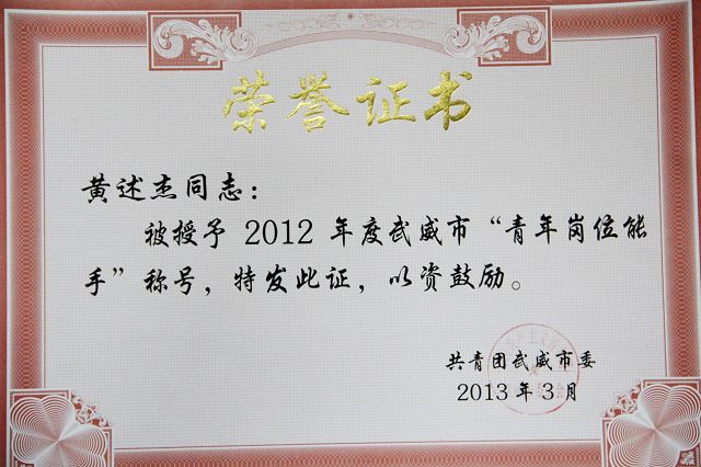3月8日,在共青團武威市二屆七次全委會上,團市委表彰了2012年度先進集體和個人,我系團總支被評為“武威市五四紅旗團支部”,系團總支書記黃述杰老師被評為“武威市青年崗位能手”,11級光伏發(fā)電技術(shù)及應(yīng)用大專班張鳳鳳同學(xué)被評為“武威市優(yōu)秀共青團員”。
