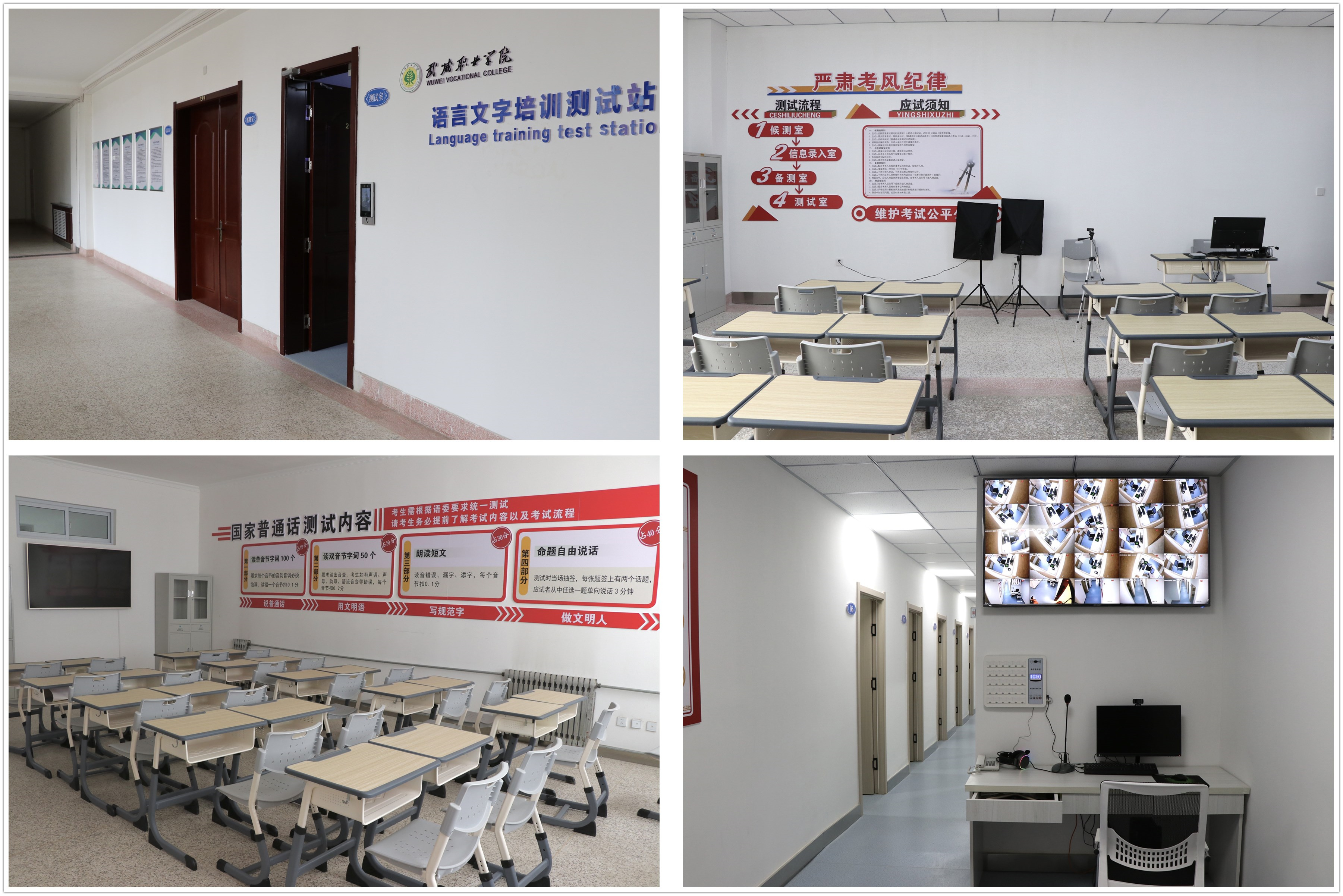 2003年建校起,學(xué)校承接武威市普通話培訓(xùn)測試任務(wù),2008年,我校語言文字培訓(xùn)測試站獲批建設(shè)。學(xué)校對普通話培訓(xùn)測試工作高度重視,努力為廣大師生搭建普通話水平培訓(xùn)測試優(yōu)質(zhì)服務(wù)平臺,2019年將“普通話標(biāo)準(zhǔn)化測試機(jī)房建設(shè)項目”列入學(xué)?!半p高”計劃建設(shè)項目,投入61萬余元,于2022年10月建成。