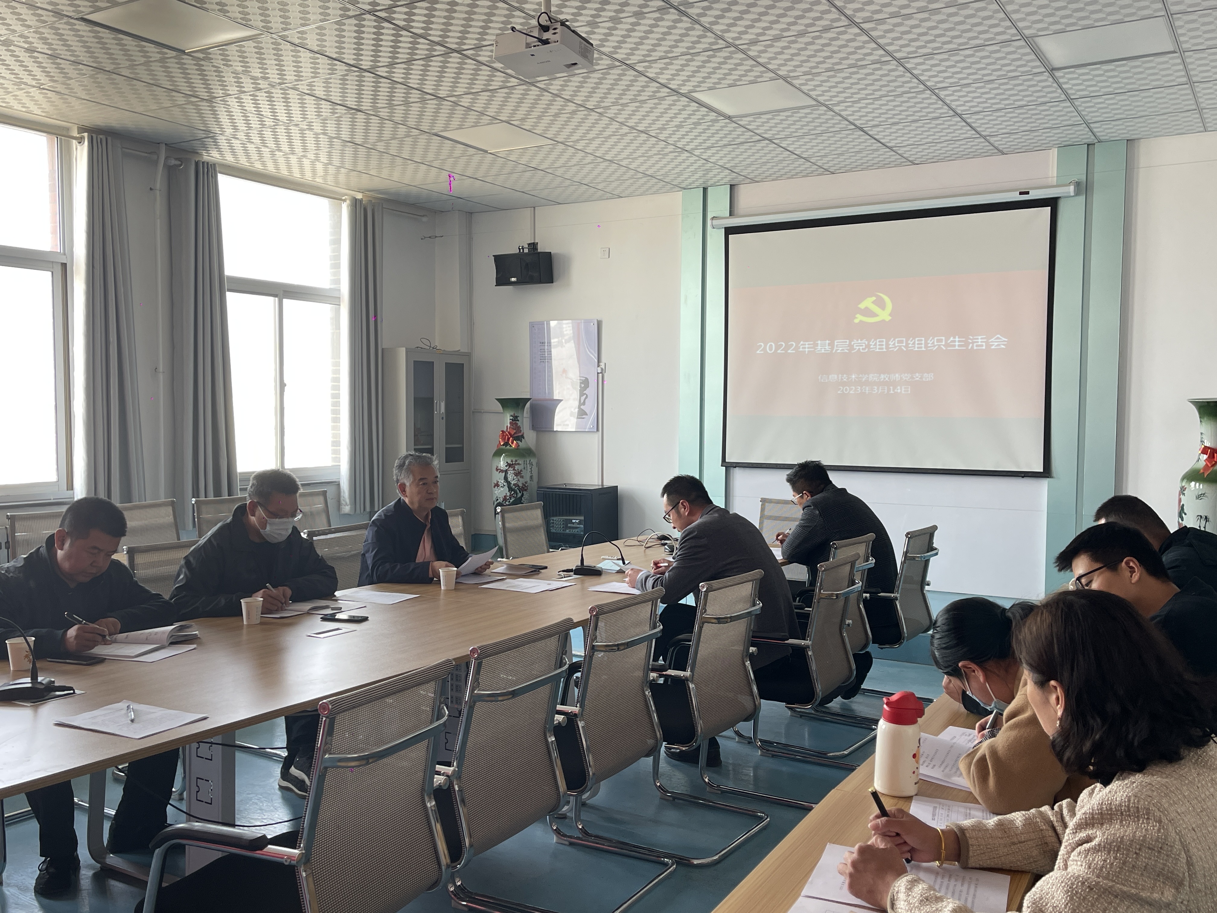 3月14日,信息技術(shù)學(xué)院黨總支組織教師和學(xué)生黨支部分別召開2022年度基層黨組織組織生活會。會議由各支部書記主持,學(xué)校黨委委員、副校長王永緒,后勤管理處負(fù)責(zé)人藺生武、后勤管理處副處長單光年對組織生活會進(jìn)行督導(dǎo)。