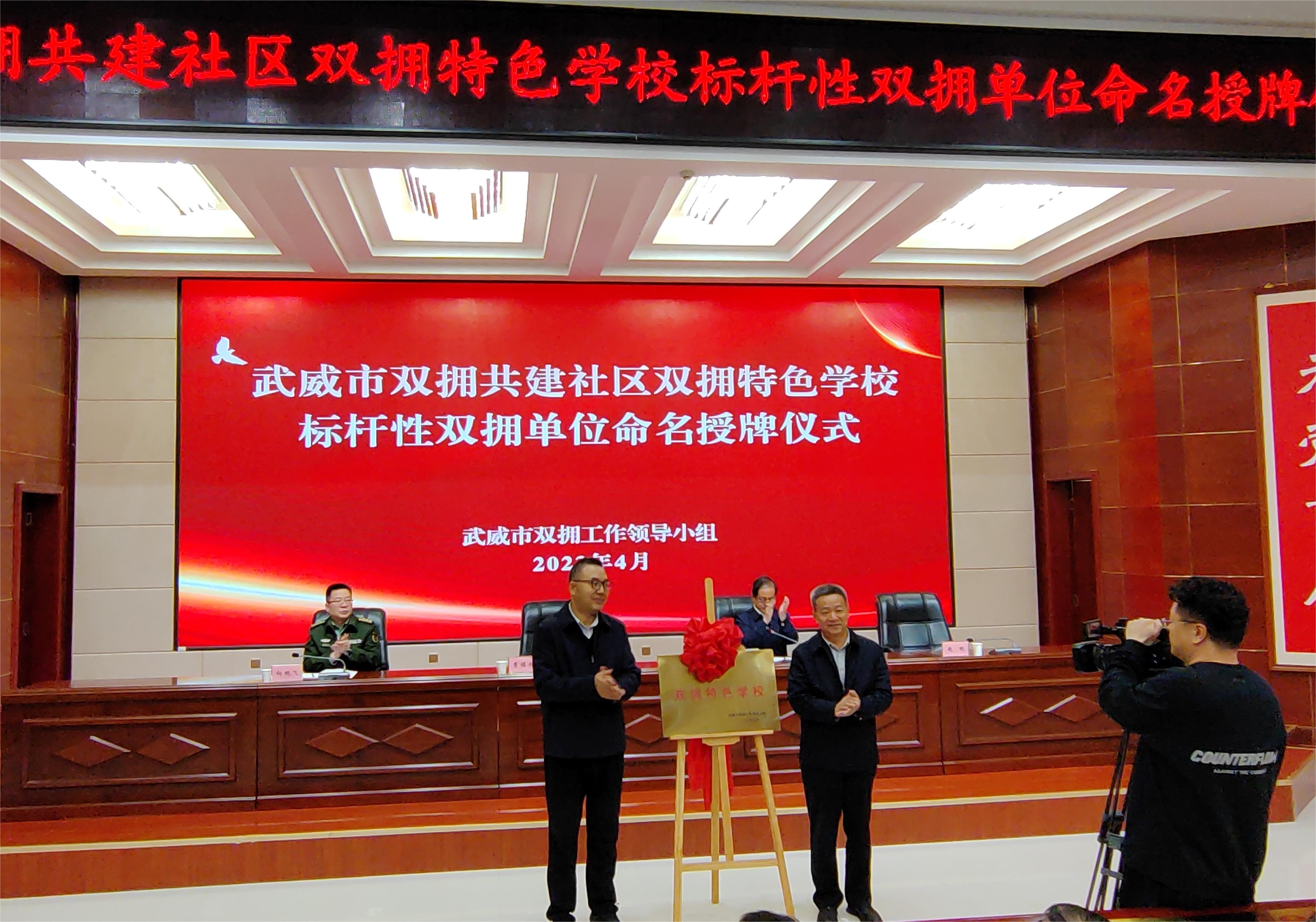 武威市雙擁共建社區(qū)、雙擁特色學(xué)校、標(biāo)桿性雙擁單位授牌儀式在我校舉行