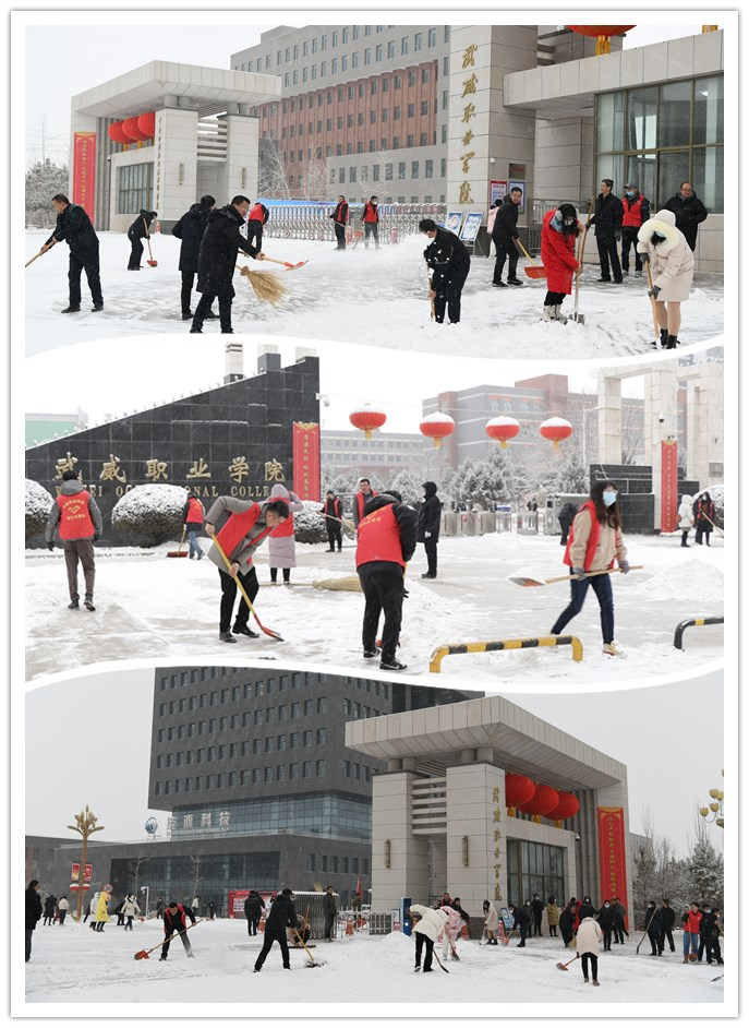 本次清掃積雪活動進(jìn)一步提高了教職工的志愿服務(wù)意識,為建設(shè)優(yōu)美、整潔、舒適的校內(nèi)外環(huán)境,建設(shè)美麗文明的武威貢獻(xiàn)了一份力量,帶動了更多的轄區(qū)居民以實(shí)際行動支持創(chuàng)城,從我做起,從身邊小事做起,從點(diǎn)滴做起,共同創(chuàng)建文明城市,爭做文明市民。