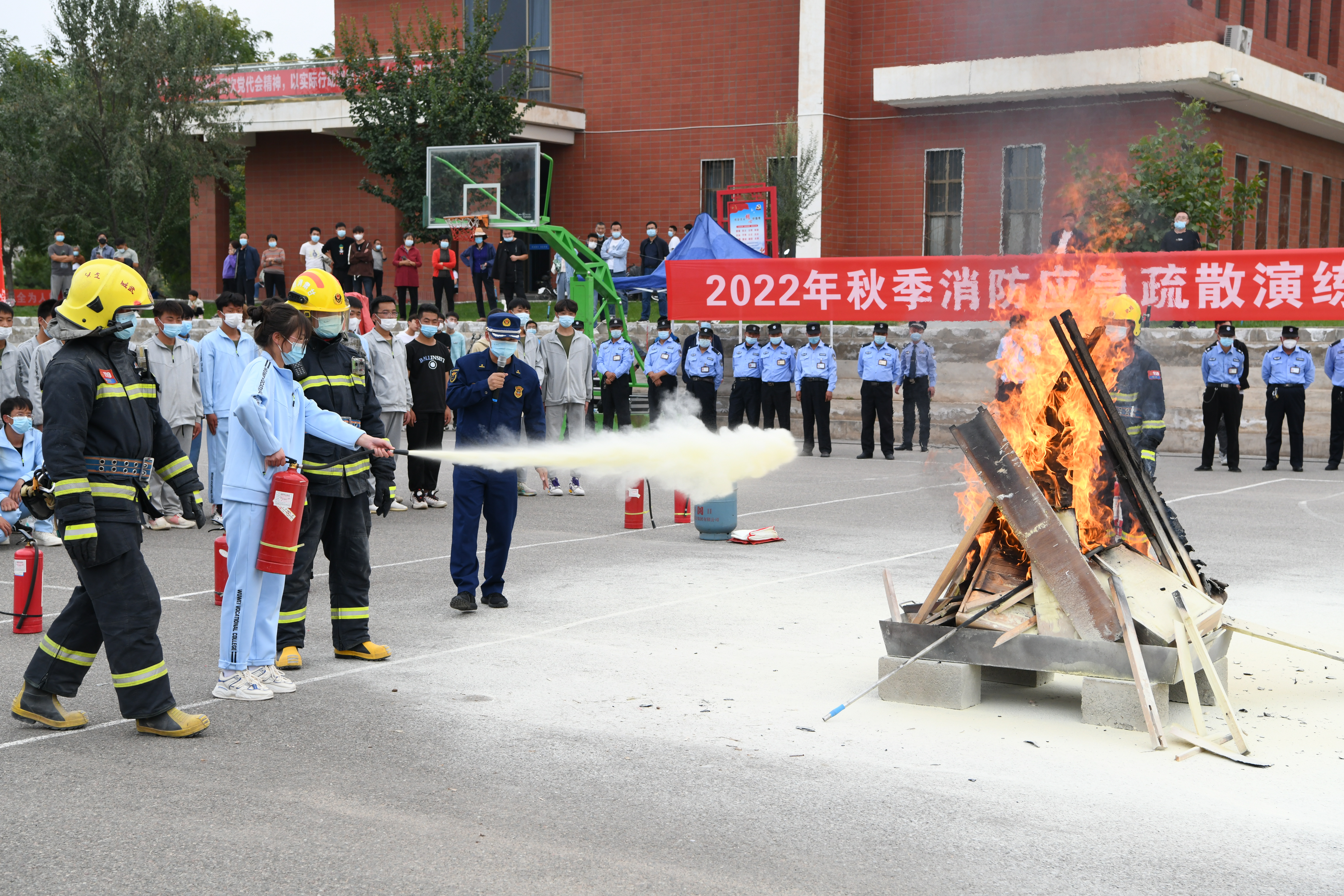 9月30日,學(xué)校聯(lián)合武威市消防救援支隊舉行了2022年秋季消防應(yīng)急疏散暨滅火演練活動。學(xué)校副校長王守云、武威市消防救援支隊涼都特勤站副站長張旭出席活動,安全保衛(wèi)處、學(xué)生工作處、各二級學(xué)院負責(zé)人和輔導(dǎo)員、班主任現(xiàn)場觀摩演練,約4200多名2022級新生參加了演練。