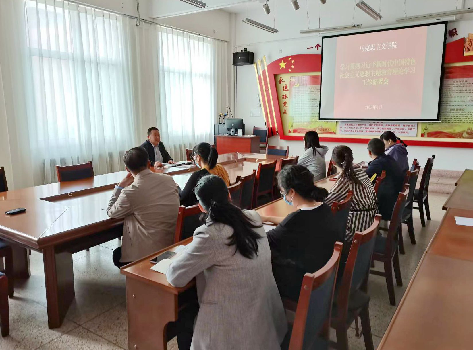 馬克思主義學(xué)院積極響應(yīng),迅速啟動(dòng),第一時(shí)間召開(kāi)了主題教育動(dòng)員部署會(huì),對(duì)學(xué)院開(kāi)展學(xué)習(xí)貫徹習(xí)近平新時(shí)代中國(guó)特色社會(huì)主義思想主題教育進(jìn)行安排部署,始終堅(jiān)持高標(biāo)準(zhǔn)、嚴(yán)要求,扎實(shí)開(kāi)展學(xué)習(xí),制定集體學(xué)習(xí)計(jì)劃表和個(gè)人自學(xué)表,明確學(xué)習(xí)內(nèi)容、時(shí)間安排、學(xué)習(xí)方式,組織領(lǐng)導(dǎo)等。以深入學(xué)習(xí)習(xí)近平新時(shí)代中國(guó)特色社會(huì)主義思想為主要內(nèi)容,以提升思政課教師政治能力為重點(diǎn),以深化黨員理論武裝為抓手,以全面提高教學(xué)能力為著力點(diǎn),引導(dǎo)黨員讀原著學(xué)原文悟原理,認(rèn)真研讀黨的二十大報(bào)告和黨章,學(xué)習(xí)《習(xí)近平著作選讀》《習(xí)近平新時(shí)代中國(guó)特色社會(huì)主義思想專題摘編》等指定學(xué)習(xí)材料,全面、系統(tǒng)、準(zhǔn)確領(lǐng)會(huì)和把握習(xí)近平新時(shí)代中國(guó)特色社會(huì)主義思想的科學(xué)體系、核心要義、實(shí)踐要求。