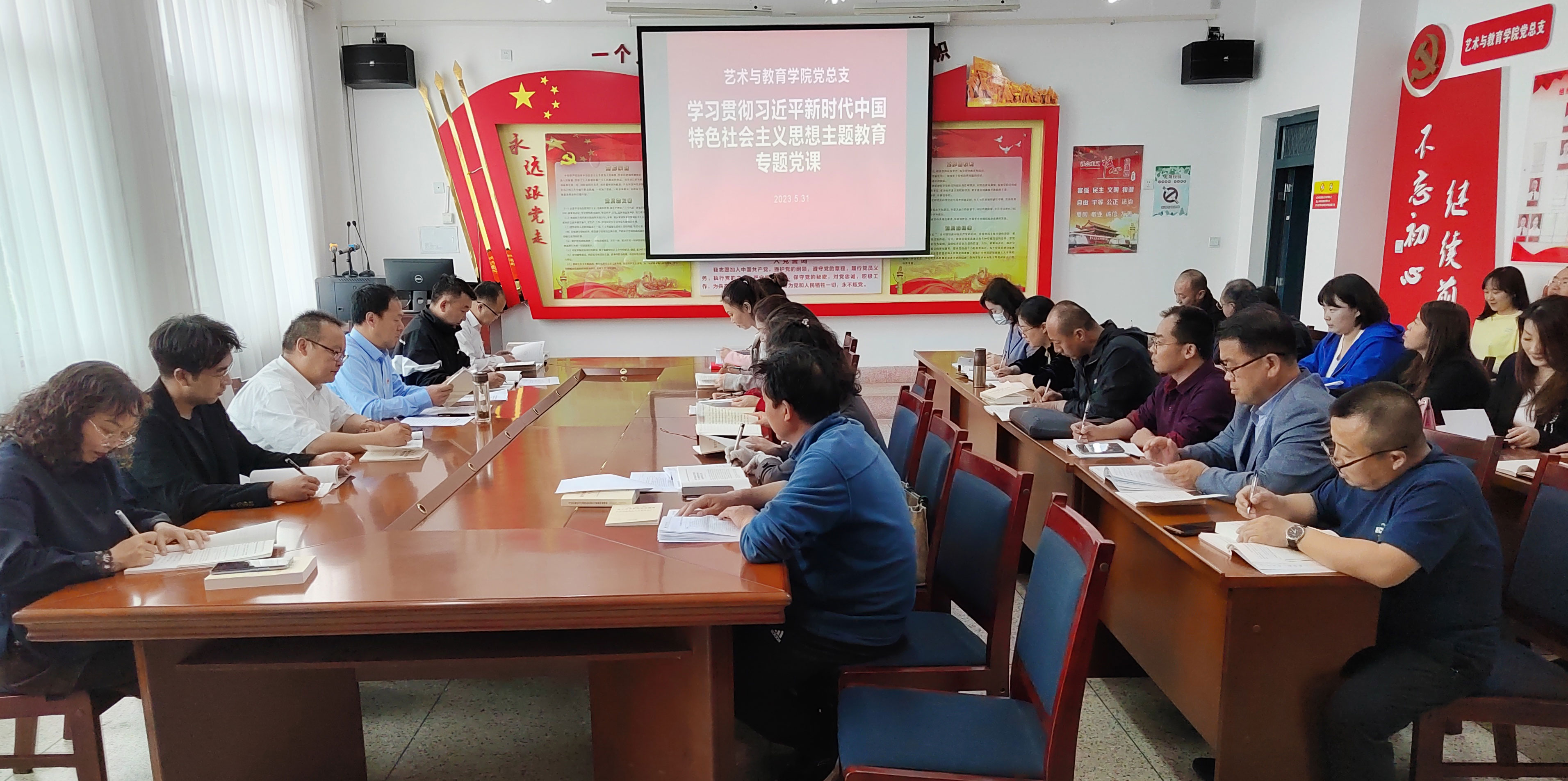 5月31日下午,藝術與教育學院黨總支書記王政在勵勤樓209會議室以《深刻領會新思想精髓推動學院高質量發(fā)展》為題,并結合個人學思踐悟和教育教學工作實際,講授學習貫徹習近平新時代中國特色社會主義思想主題教育專題黨課,藝術與教育學院黨總支全體黨員參加。