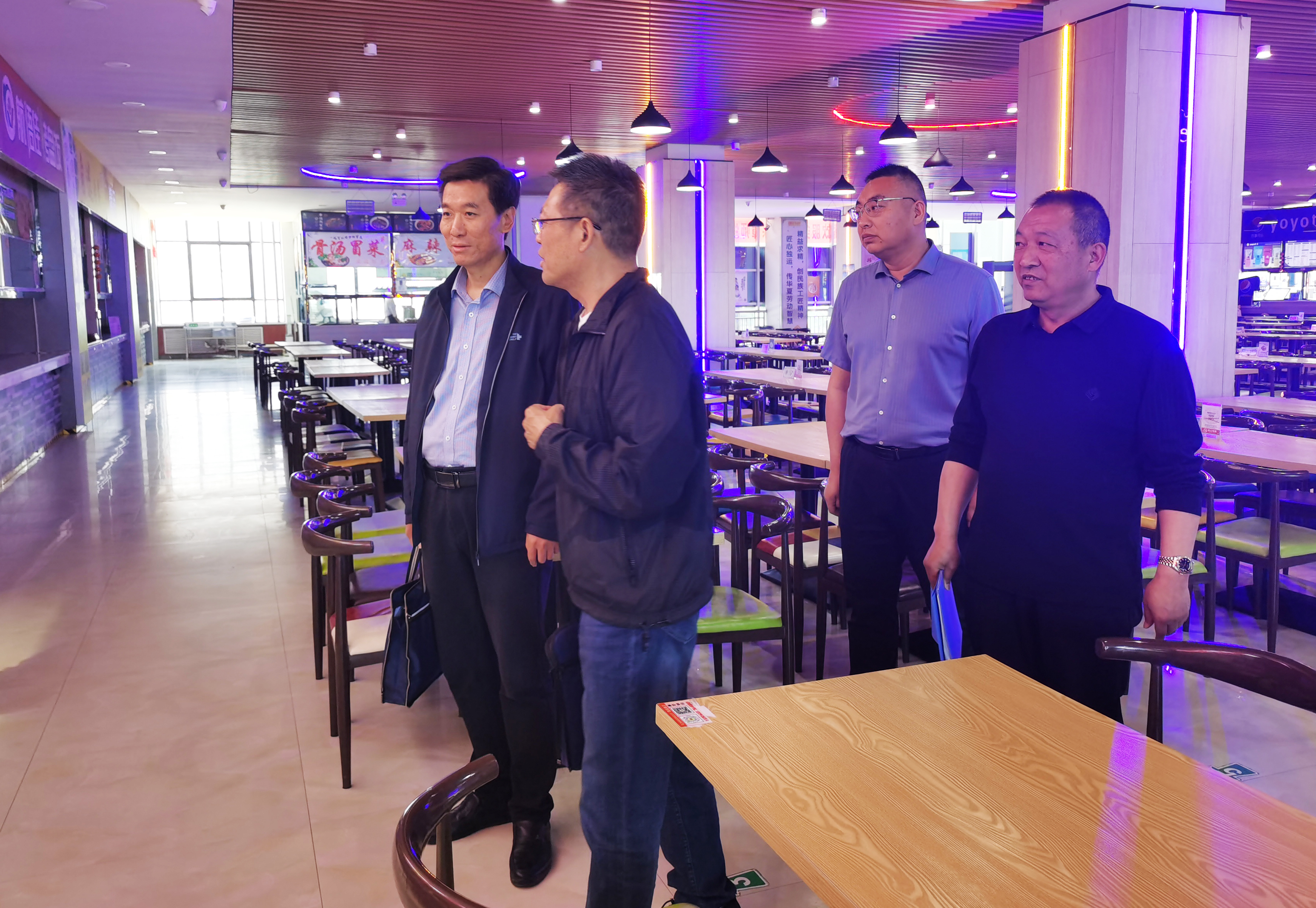 專題調(diào)研組在二號學生食堂就食堂規(guī)范化管理、食材采購存放、加工售賣、餐具消毒、環(huán)境衛(wèi)生、飯菜價格、“互聯(lián)網(wǎng)+明廚亮灶”等進行了查看。省委主題教育第十巡回指導組對此次調(diào)研主題及學校食堂保供穩(wěn)價、就餐環(huán)境等工作給予了充分肯定,同時也提出了意見建議。一是要及時消除安全隱患,維修翹邊、下沉吊頂;二是提供多層次餐飲服務,滿足不同地域?qū)W生的口味需求;三是加強細節(jié)管理,提升管理水平。為從業(yè)人員配發(fā)透明餐飲口罩,在確保安全衛(wèi)生的前提下,提升從業(yè)人員工作舒適度。四是要厲行節(jié)約,持續(xù)倡導光盤行動,杜絕舌尖上的浪費。