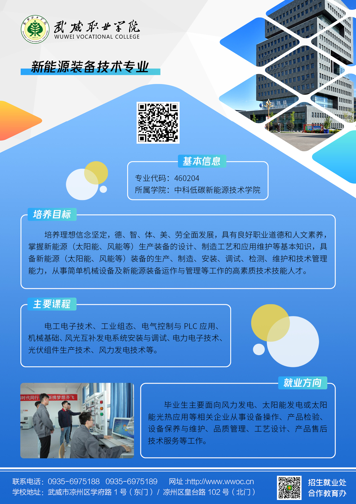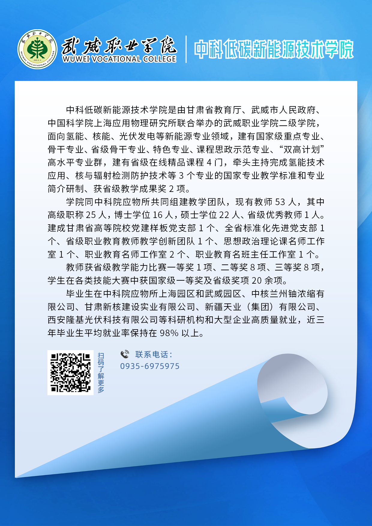 武威職業(yè)學(xué)院二級(jí)學(xué)院專業(yè)簡(jiǎn)介丨中科低碳新能源…