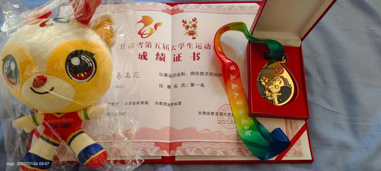 馬慧康同學(xué)在田徑男子丙組10000米比賽中獲得銀牌,在5000米比賽中獲得銅牌。