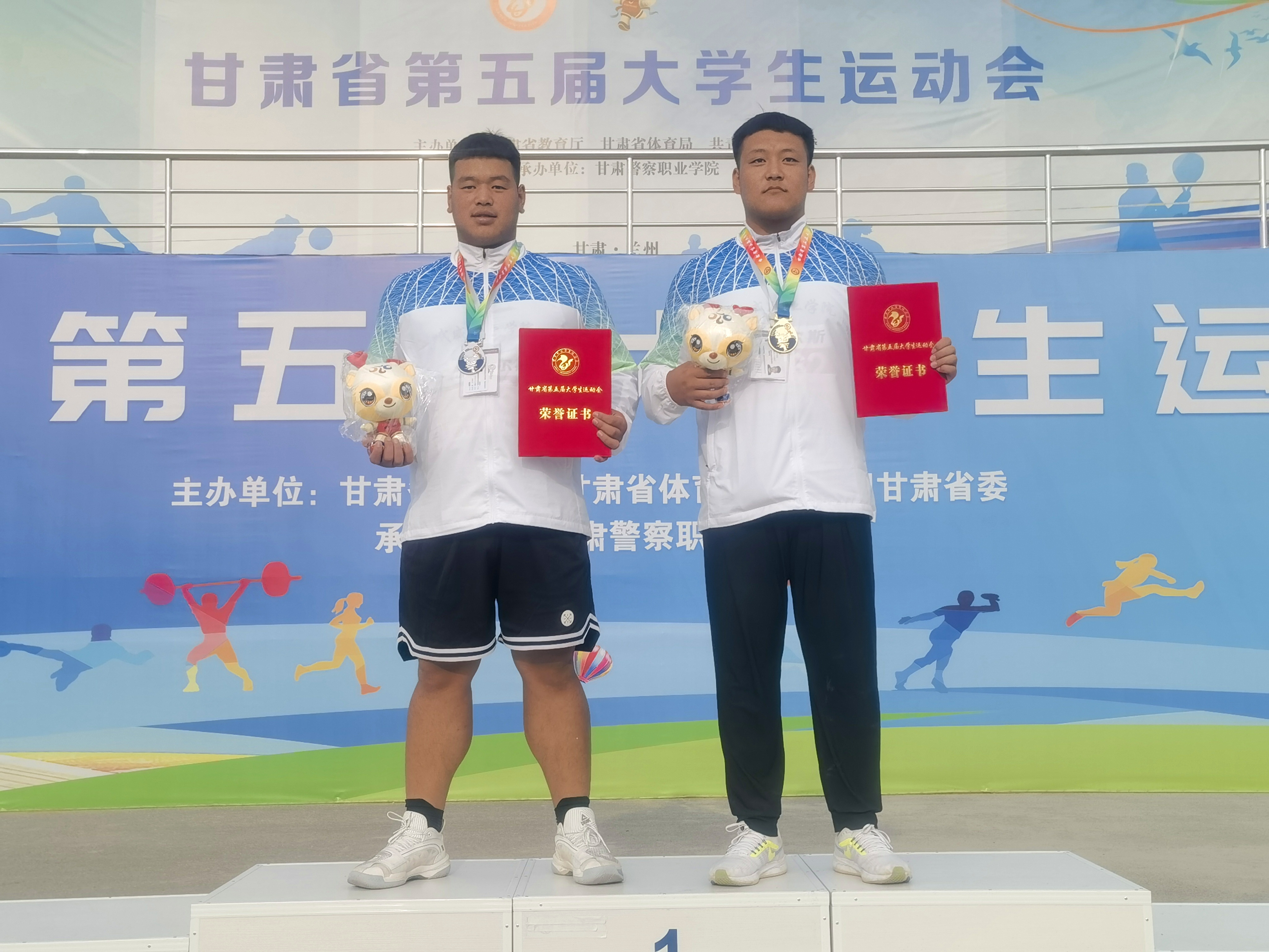 馬高昆同學(xué)在田徑男子鐵餅(丙組)項目和田徑男子鉛球丙組項目比賽中獲得2枚金牌,剡國輝同學(xué)在田徑男子丙組鉛球項目比賽中獲得銀牌。