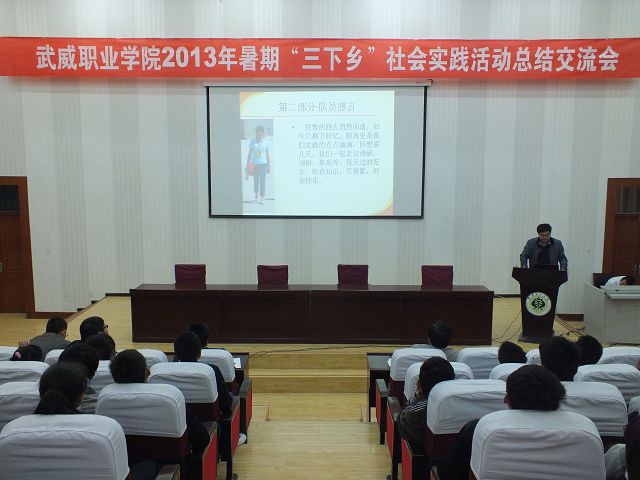 10月14日下午,武威職業(yè)學(xué)院2013年暑期“三下鄉(xiāng)”社會實踐活動總結(jié)交流會在東階梯教室舉行,學(xué)院團(tuán)委負(fù)責(zé)人及各實踐團(tuán)隊成員和新生團(tuán)學(xué)干部代表共300人參加了交流會。
