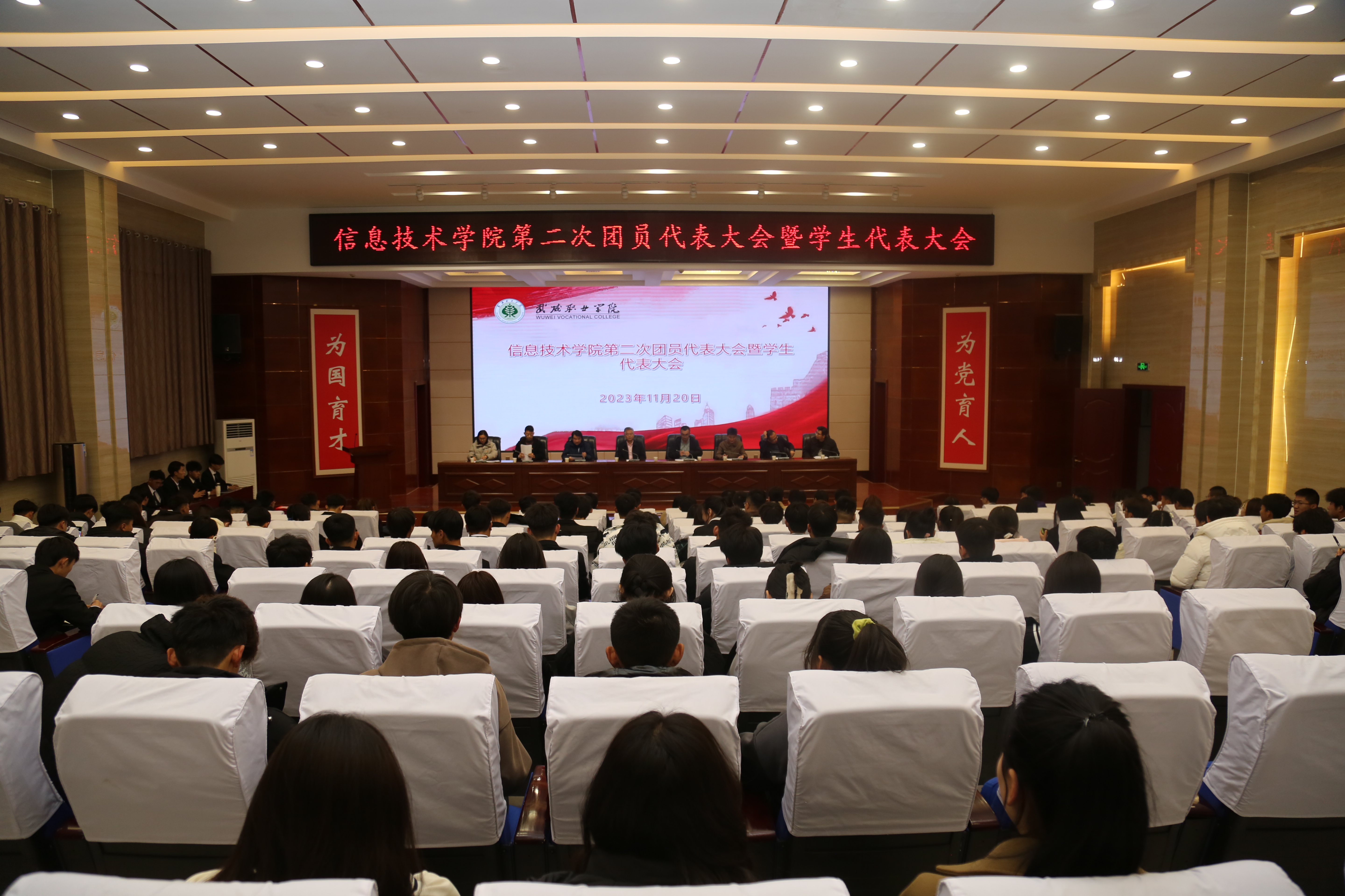 2023年11月20日,信息技術(shù)學(xué)院第二次團(tuán)員代表大會(huì)暨學(xué)生代表大會(huì)在菁英廳隆重召開。信息技術(shù)學(xué)院黨總支書記潘從明、校團(tuán)委張登海及師生代表共200余人參加會(huì)議。