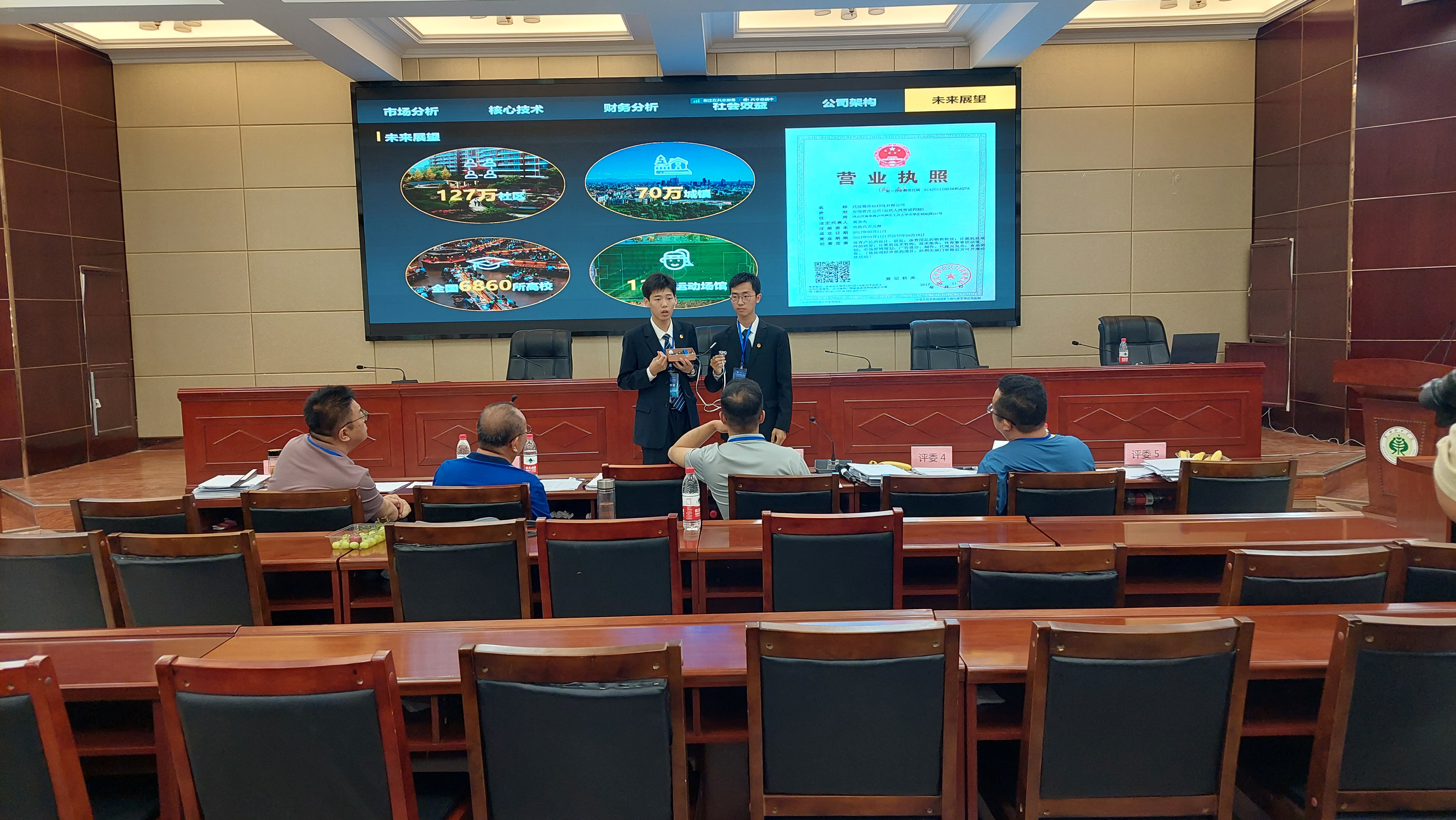 開幕式后,51支參賽團隊分別在行樹樓報告廳和創(chuàng)新創(chuàng)業(yè)中心展廳進行了路演答辯。項目路演過程中,各組選手借助PPT從項目背景、解決方案、商業(yè)模式、運營情況、團隊介紹等方面介紹參賽項目,充分展示了大學生創(chuàng)新創(chuàng)業(yè)的卓越風采。在現(xiàn)場答辯環(huán)節(jié)中,評委老師們結(jié)合選手PPT講解與項目策劃書等進行提問并提出指導性意見。經(jīng)過評委們的提問和指導,參賽選手對自己的項目有了更深層次的理解。