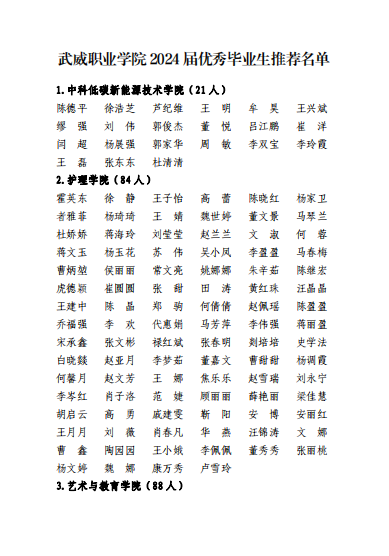 關(guān)于2024屆武威職業(yè)學(xué)院優(yōu)秀畢業(yè)生候選人的公示
