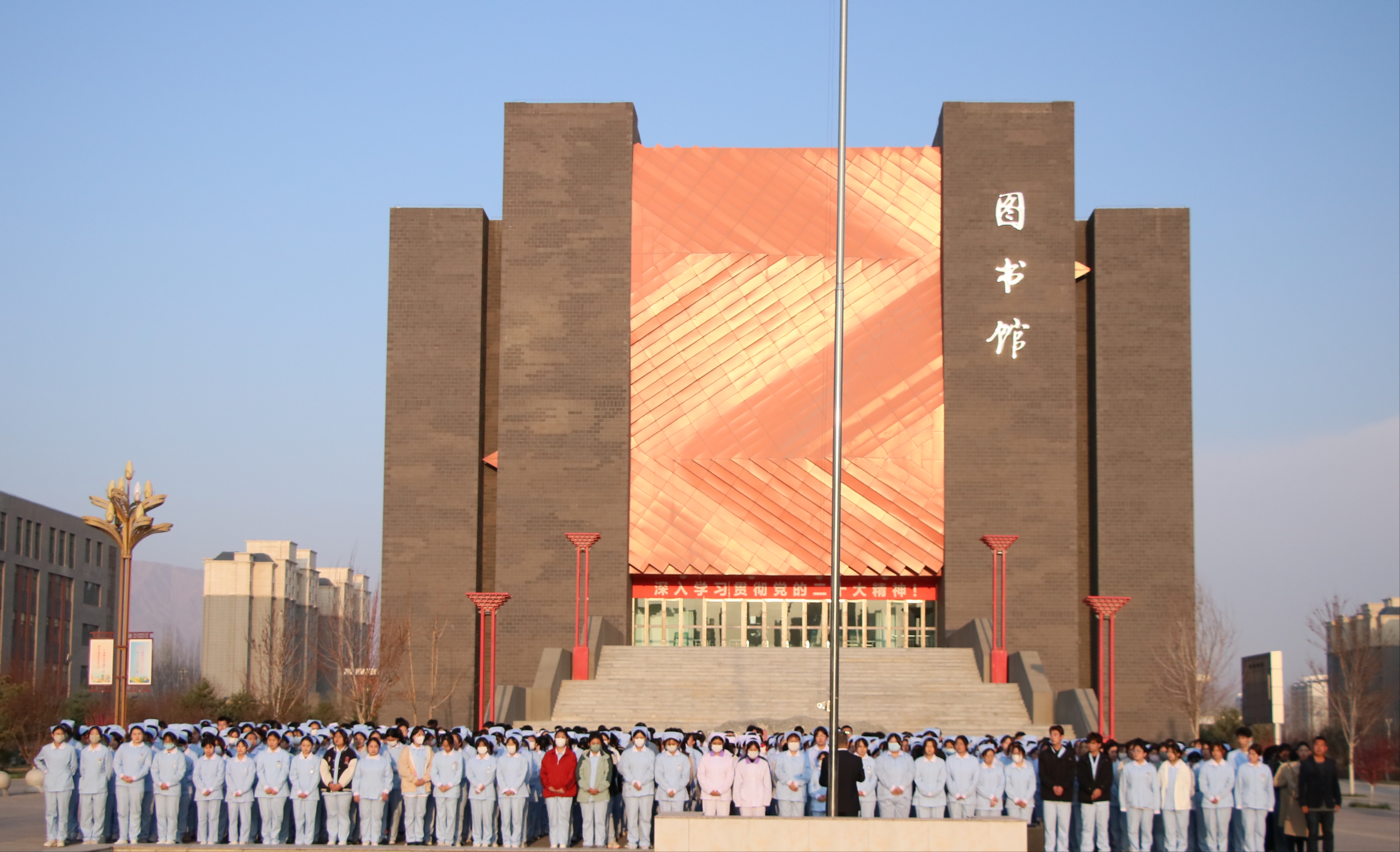 4月7日清晨,武威職業(yè)學(xué)院護(hù)理學(xué)院在圖書館前廣場舉行升國旗儀式,學(xué)院黨總支書記張建輝、團(tuán)委書記楊杰、全體班主任及2022、2023級全體學(xué)生參加此次升旗儀式,儀式由楊杰主持。