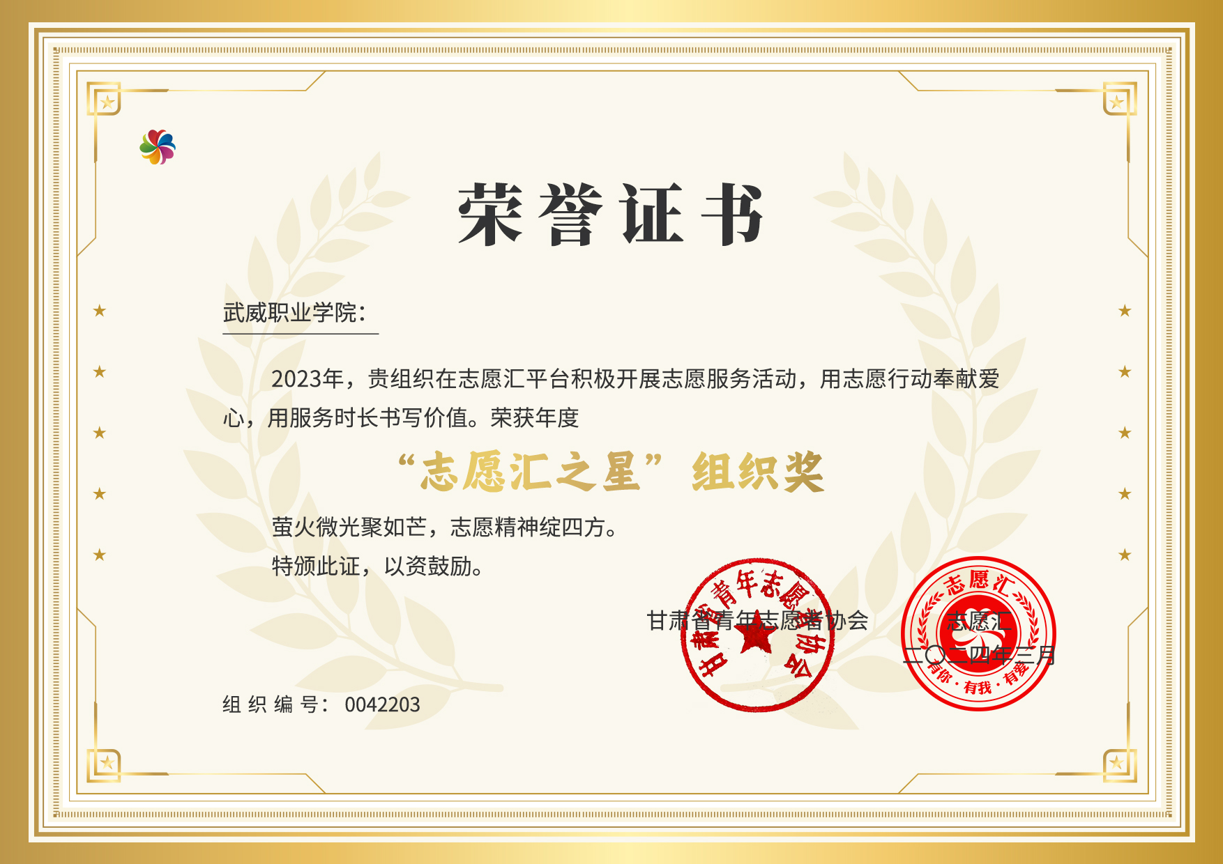 近日,學(xué)校青年志愿服務(wù)工作再傳喜訊,榮獲2023年度“志愿匯之星”年度組織獎(jiǎng)。