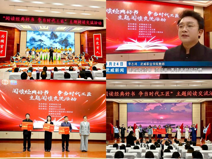 4月23日,由省總工會主辦、市總工會承辦,武威職業(yè)學院協(xié)辦的“閱讀經(jīng)典好書爭當時代工匠”主題讀書交流活動在菁英廳隆重舉行。省總工會三級調(diào)研員馬艷,市總工會黨組書記、常務副主席康金蓮,學校黨委副書記翟存祥出席活動。全市職工書屋、便利型職工閱讀站點、勞模書架建設(shè)單位工會負責人,市、縣區(qū)總工會干部職工230多人參加活動。