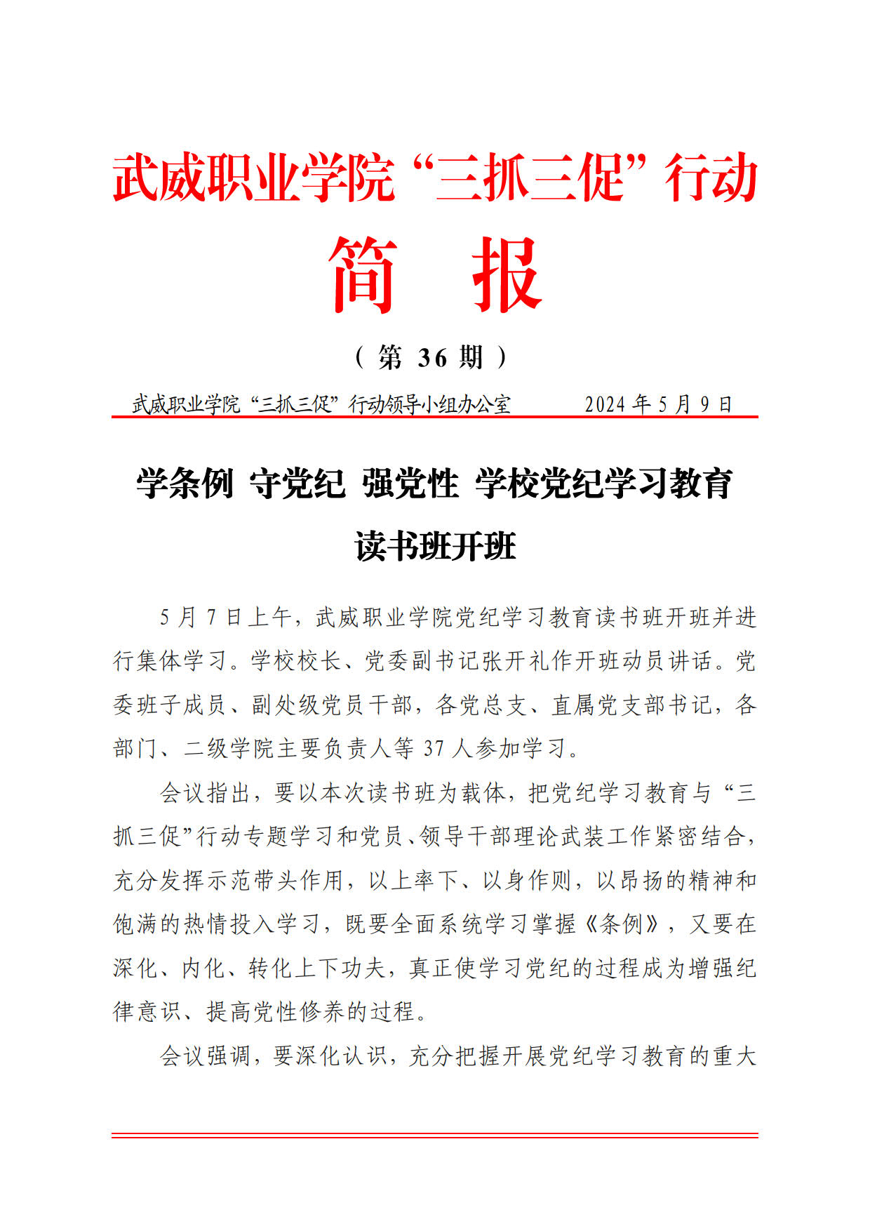 簡報第36期:學(xué)條例 守黨紀(jì) 強黨性 學(xué)校黨紀(jì)學(xué)習(xí)教育讀書班開班
