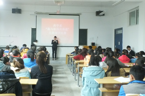 為了深入學(xué)習(xí)貫徹黨的十八大精神,引領(lǐng)廣大學(xué)生為實現(xiàn)國家富強(qiáng)、民族復(fù)興、人民幸福的偉大“中國夢”而奮發(fā)學(xué)習(xí)、努力奮斗,藥學(xué)系于2013年12月3日組織全體師生開展了以“我與祖國共奮進(jìn)”為主題的演講比賽。