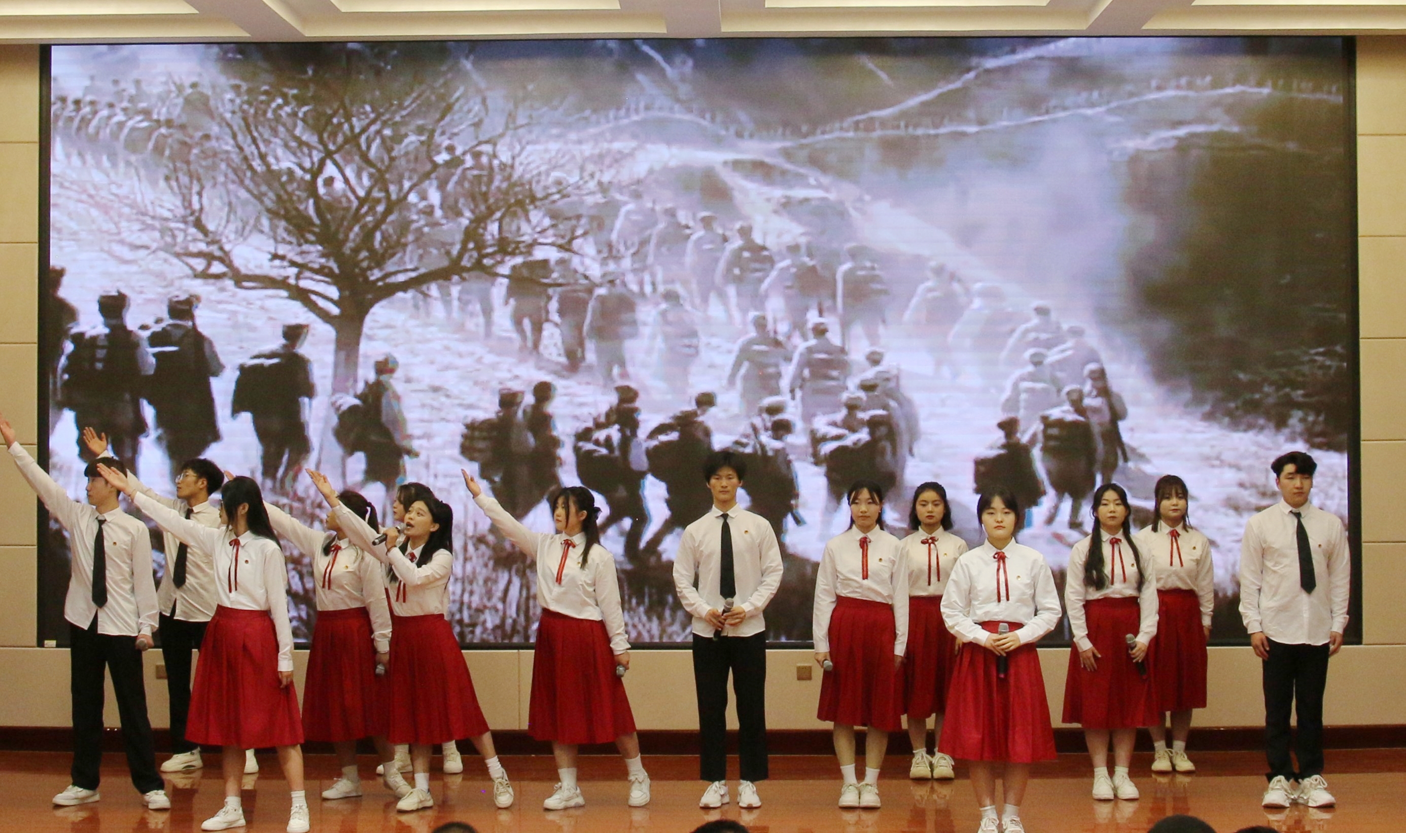 誦讀之聲不絕于耳,誦出青年學(xué)子對新時代的期許;強國之音擲地有聲,頌出青年學(xué)子的使命感與責(zé)任感。相信武職學(xué)子必將以青春熱忱予拼搏以力量,以家國情懷賦前進以方向,永葆青春底色,以最昂揚的姿態(tài)為祖國獻禮,以奮斗之我、追夢之我,全力為學(xué)校高質(zhì)量發(fā)展注入青春動能,在中國式現(xiàn)代化建設(shè)中挺膺擔(dān)當!