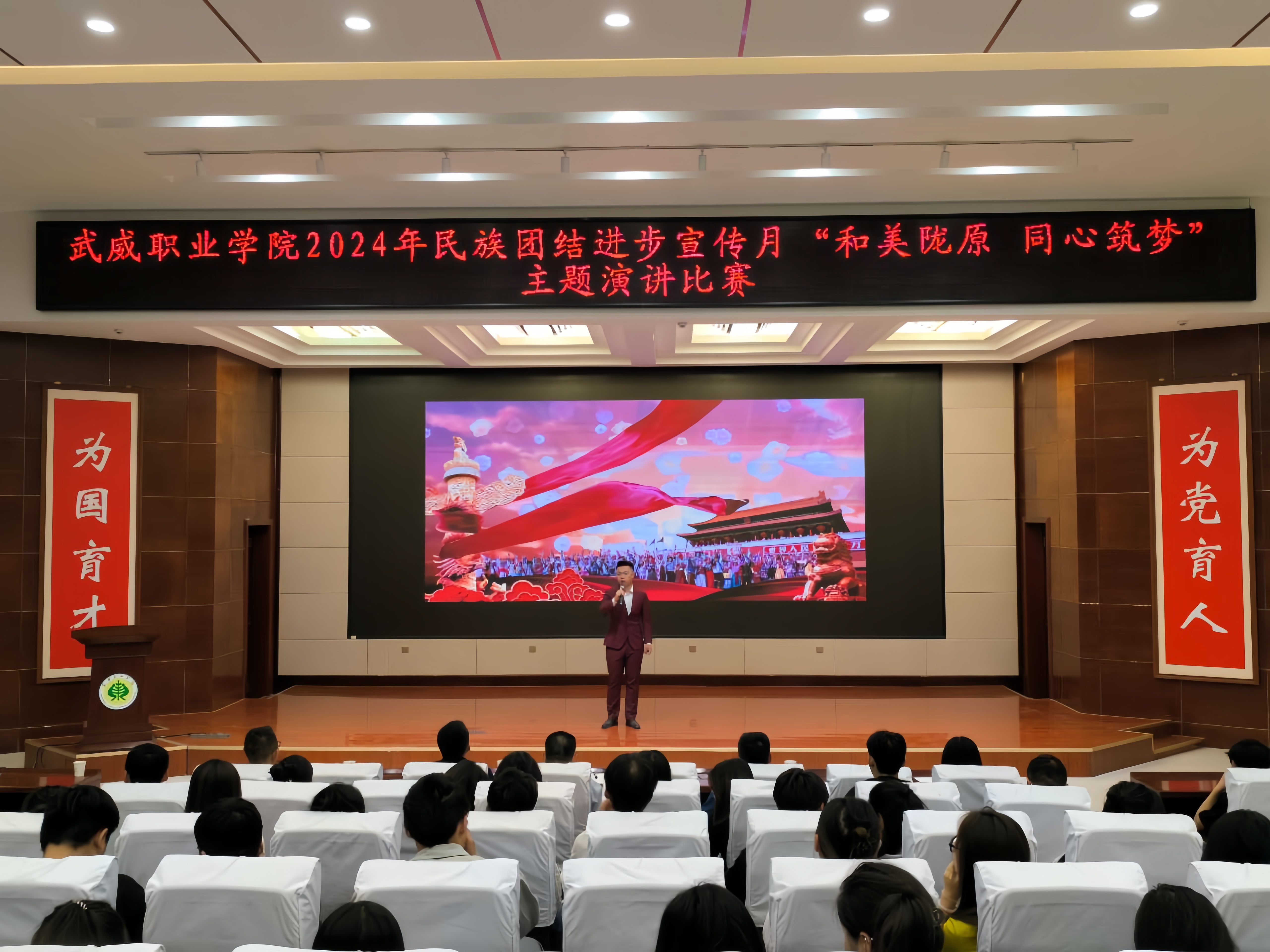 為持續(xù)深化民族團結進步教育,進一步引導各族師生牢固樹立“四個與共”的共同體理念。學校于5月30日晚在學生發(fā)展中心菁英廳舉辦了“和美隴原 同心筑夢”主題演講比賽。200余名師生參加活動。
