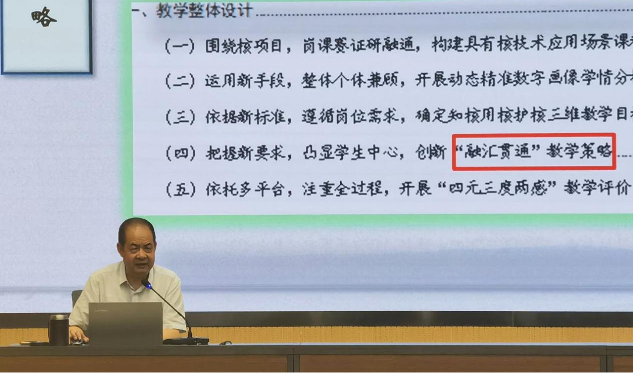 翟存祥以“獲獎(jiǎng)作品是如何打磨的——以2023年核技術(shù)應(yīng)用作品為例”為題,對(duì)標(biāo)國(guó)家教學(xué)能力大賽標(biāo)準(zhǔn),總結(jié)參賽經(jīng)驗(yàn),對(duì)比賽中教學(xué)團(tuán)隊(duì)的組建、參賽項(xiàng)目的選題、人才培養(yǎng)方案的完善、課程標(biāo)準(zhǔn)的制訂、教學(xué)實(shí)施方案和教案撰寫(xiě)、課堂實(shí)錄視頻的拍攝以及賽場(chǎng)答辯的準(zhǔn)備做了深入細(xì)致的分析。