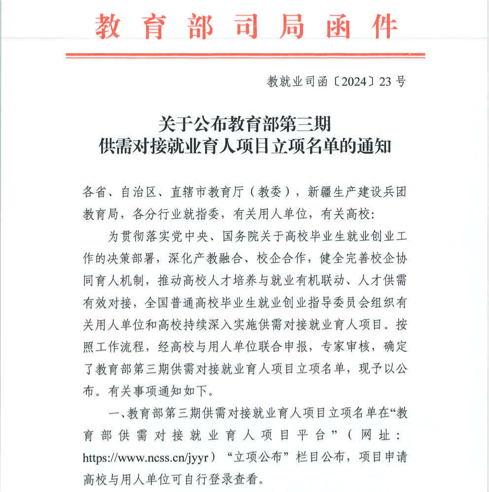 學(xué)校獲批教育部第三期供需對(duì)接就業(yè)育人項(xiàng)目6項(xiàng)