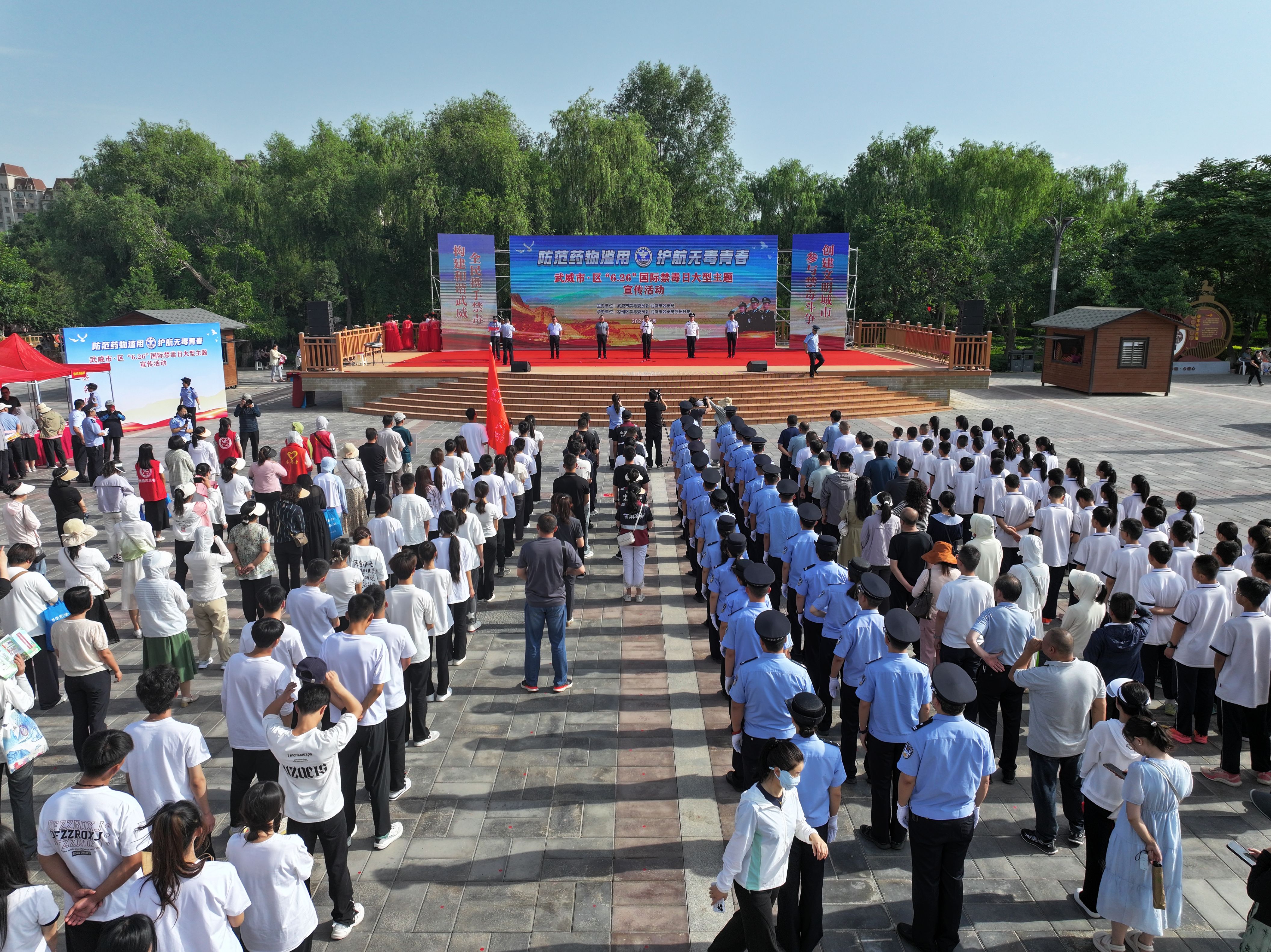 6月26日上午,學(xué)校組織50名師生參加了武威市禁毒委在涼州區(qū)植物園舉行的“6.26”國際禁毒日暨“防范藥物濫用 護(hù)航無毒青春”宣講活動。活動中,我校學(xué)生代表宣讀了《青少年防范藥物濫用倡議書》,師生在簽名墻簽名。