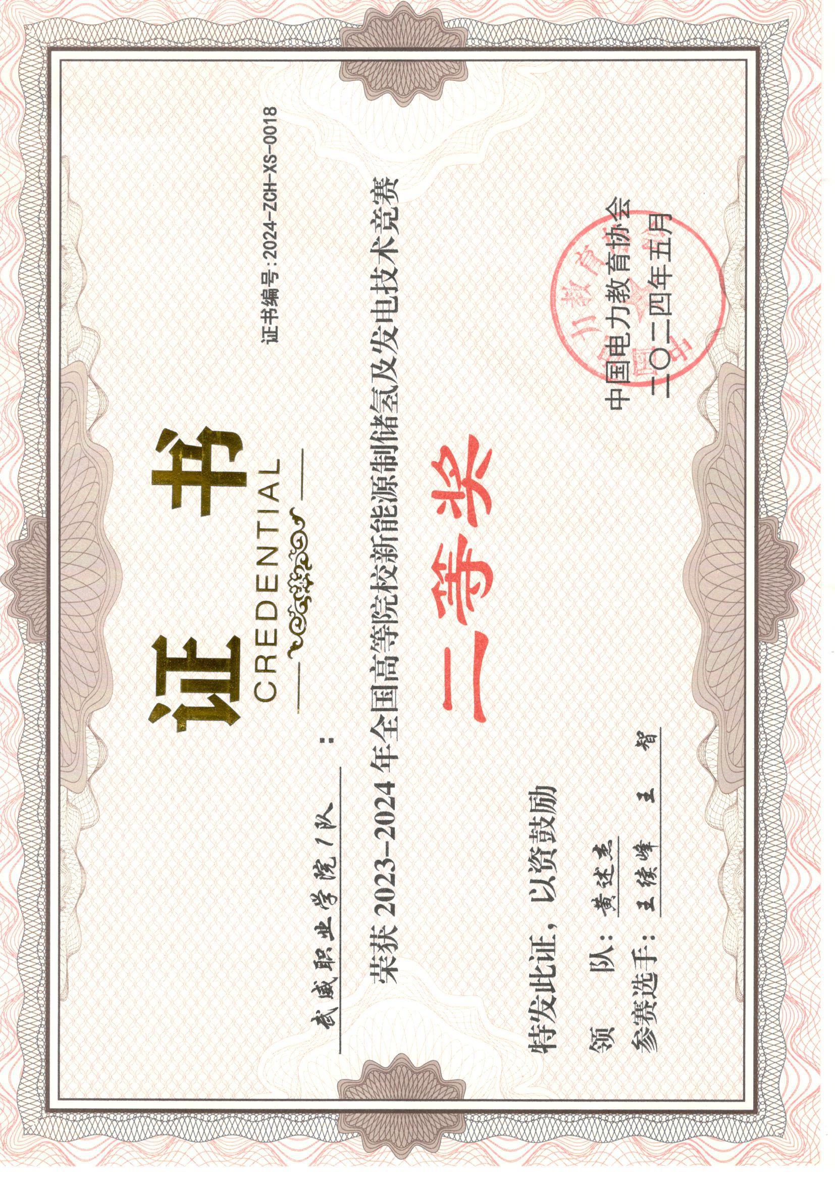 2024年全國高等院校新能源制儲氫及發(fā)電技術(shù)競賽二等獎