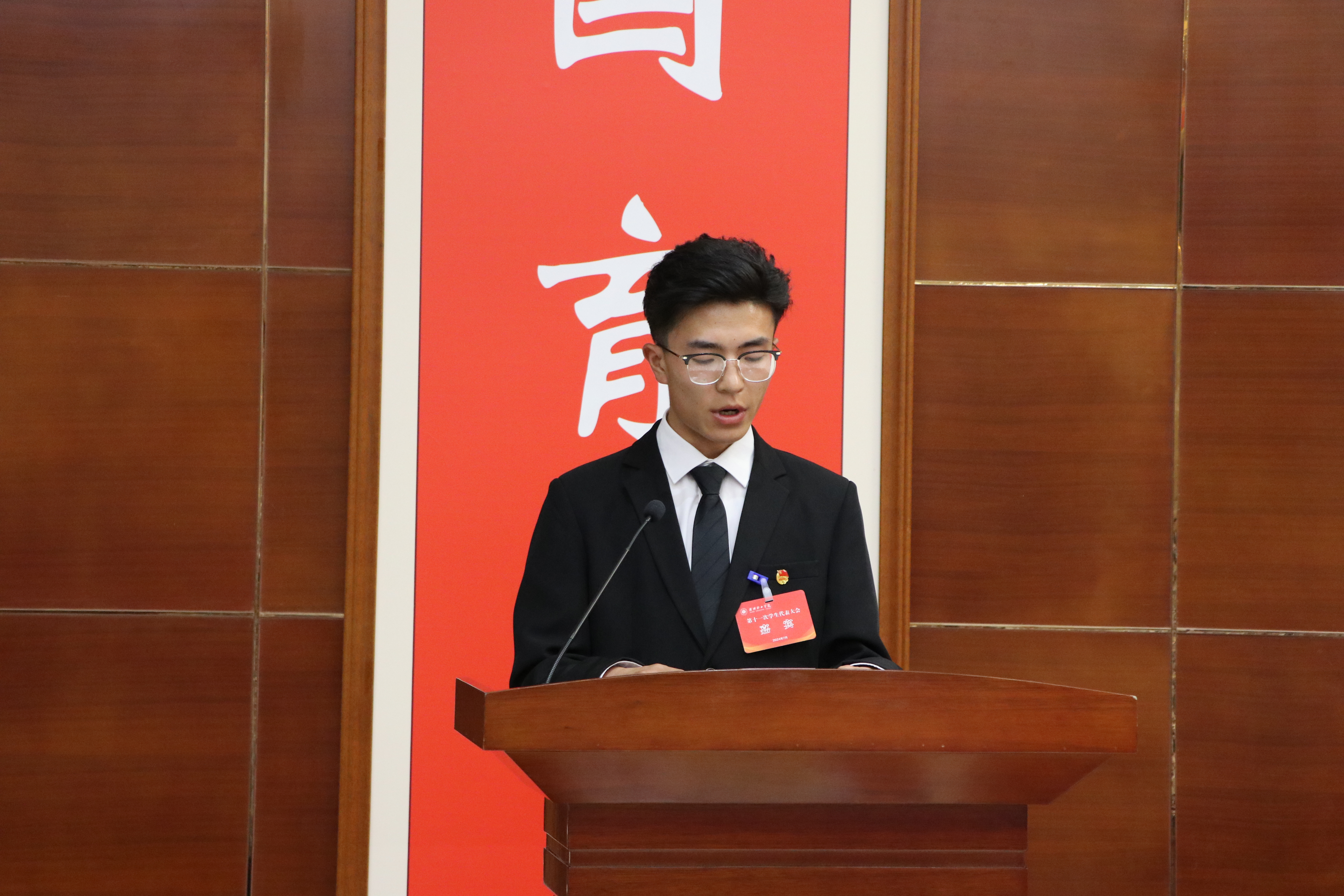學(xué)校學(xué)生會(huì)主席團(tuán)成員虎梁才同學(xué)代表第十屆學(xué)生會(huì)委員會(huì)向大會(huì)作題為《激揚(yáng)青春奏華章,挺膺時(shí)代勇?lián)?dāng),團(tuán)結(jié)帶領(lǐng)廣大同學(xué)在矢志奮斗中書(shū)寫(xiě)時(shí)代華章》的工作報(bào)告。