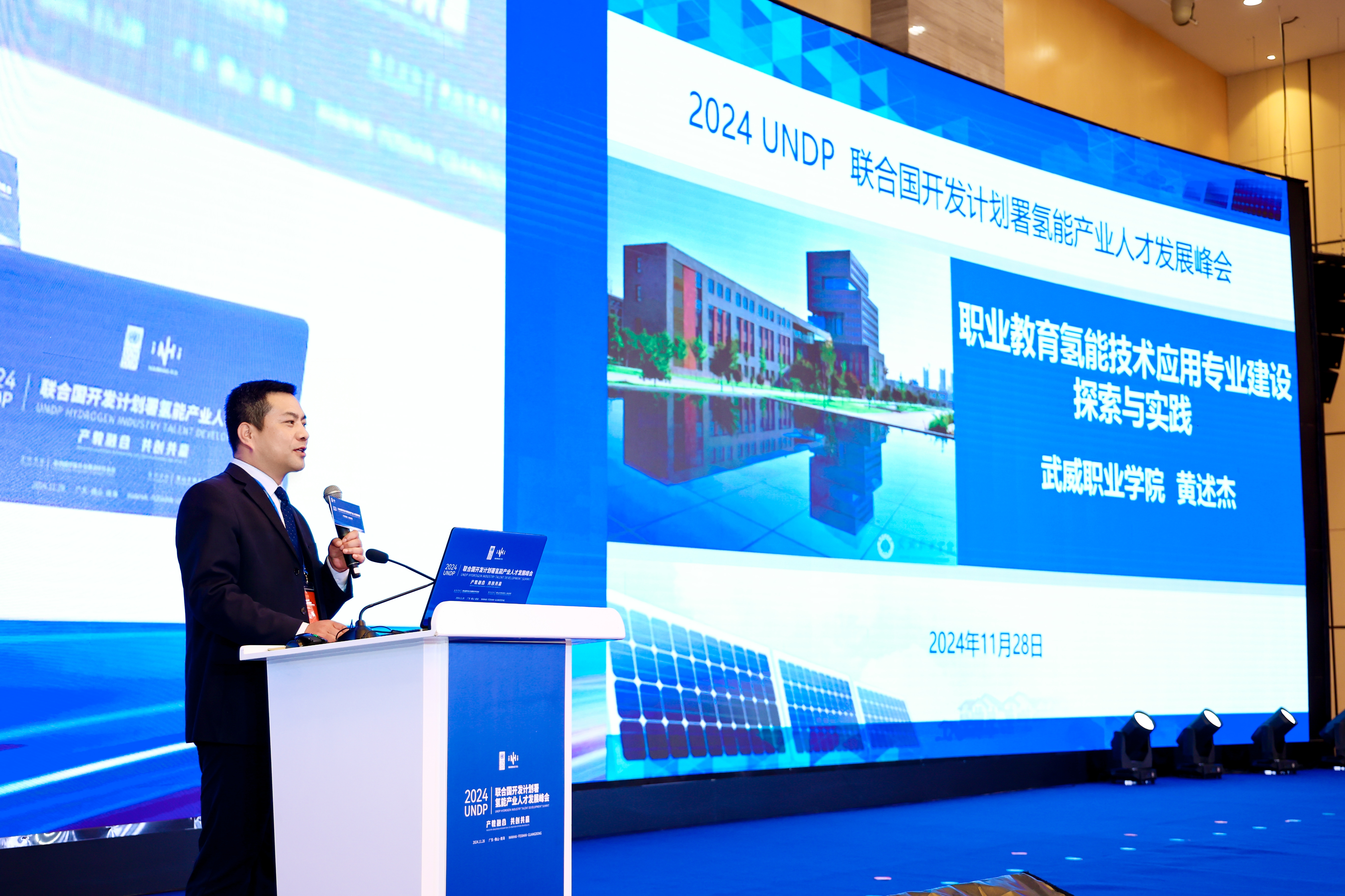 11月28日,由聯(lián)合國開發(fā)計劃署駐華代表處、佛山市南海區(qū)人民政府聯(lián)合主辦的UNDP(The United Nations Development Programme 聯(lián)合國開發(fā)計劃署)氫能產(chǎn)業(yè)人才發(fā)展峰會于佛山市成功舉行。本次峰會作為全國首個由國際機構(gòu)主導(dǎo)的國際氫能產(chǎn)業(yè)人才會議,聚焦氫能領(lǐng)域高素質(zhì)技能人才的培養(yǎng),推動產(chǎn)教深度融合,探索為產(chǎn)業(yè)發(fā)展提供重要技能型人才支撐路徑。我院中科低碳新能源技術(shù)學(xué)院院長黃述杰教授、王廣華博士和王續(xù)峰老師參加此次會議。