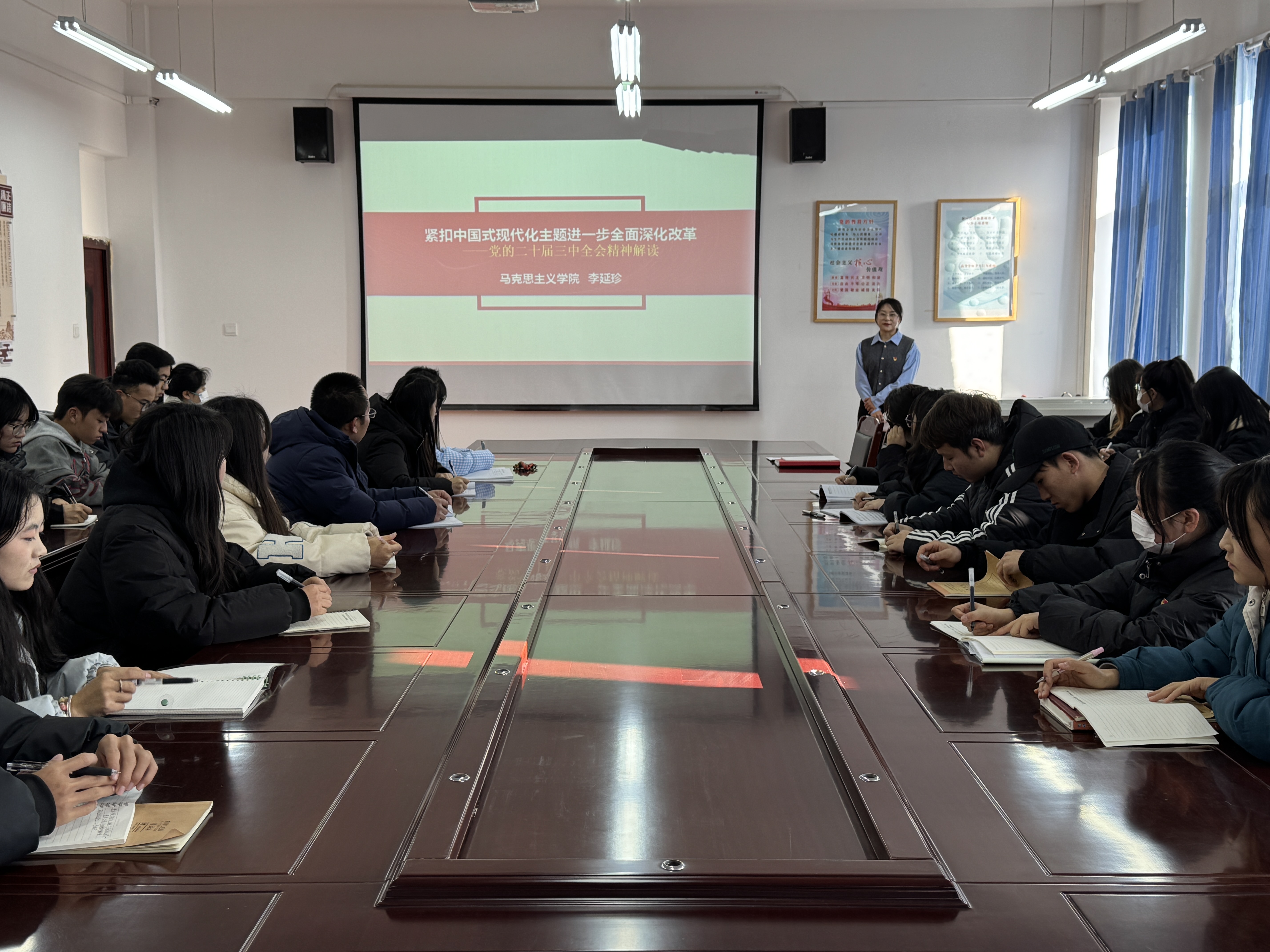 為深入學(xué)習(xí)貫徹黨的二十屆三中全會(huì)精神和習(xí)近平總書記視察甘肅重要講話重要指示精神,引導(dǎo)全校師生把思想和行動(dòng)統(tǒng)一到黨中央決策部署上來。12月19日下午,學(xué)院邀請學(xué)校宣講組成員、馬克思主義學(xué)院教師李延珍進(jìn)行黨的專題宣講解讀。醫(yī)學(xué)技術(shù)學(xué)院全體黨員參加活動(dòng)。