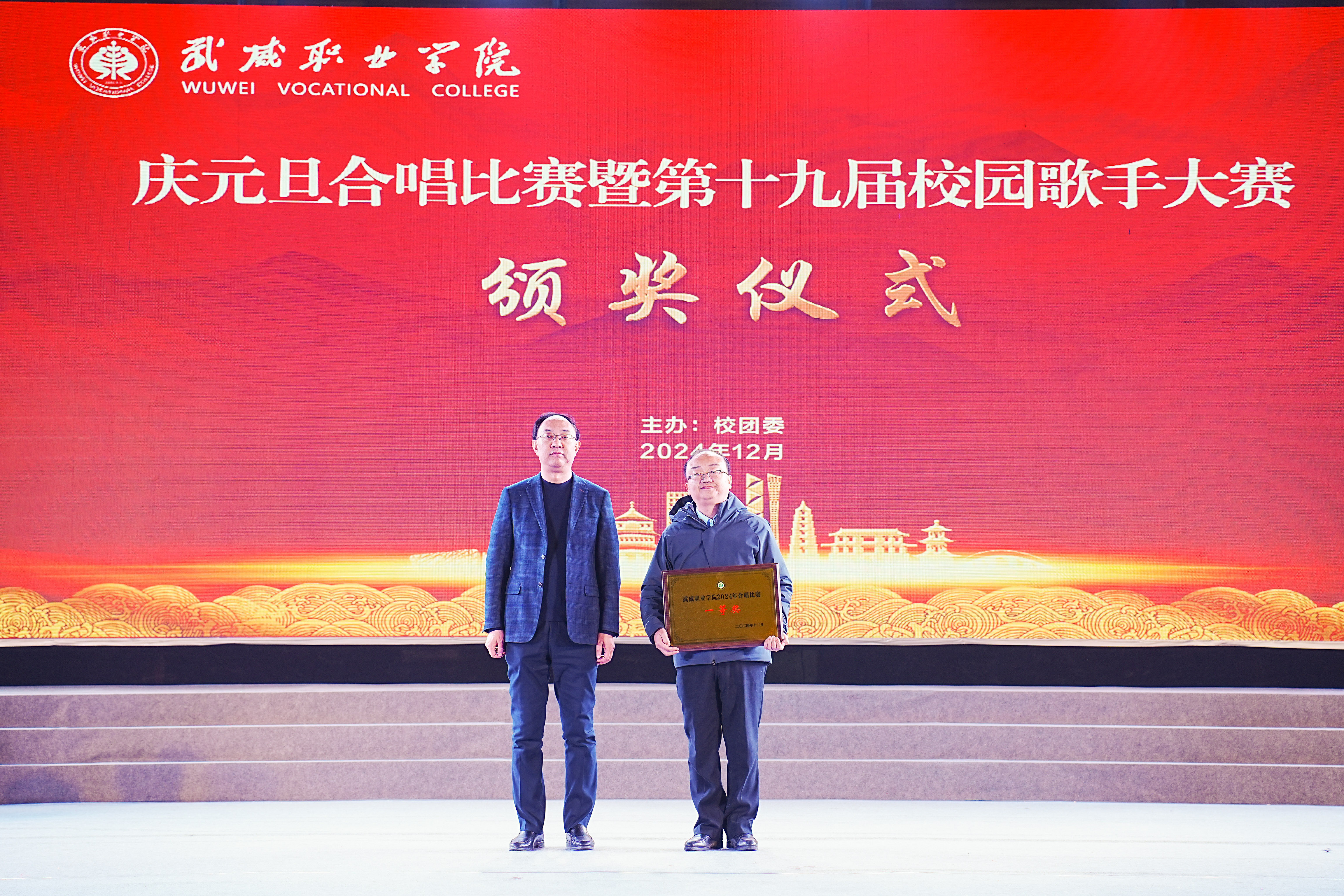 歌聲獻(xiàn)禮時(shí)代,青春唱響未來。12月26日晚,學(xué)?!皯c元旦”合唱比賽暨第十九屆校園歌手大賽在體育館成功舉辦。學(xué)校黨委書記王宏出席活動并為獲獎集體和個(gè)人頒獎,黨委委員、副校長王守云出席活動,各二級學(xué)院和相關(guān)部門負(fù)責(zé)人與2000余名師生現(xiàn)場觀看了比賽。