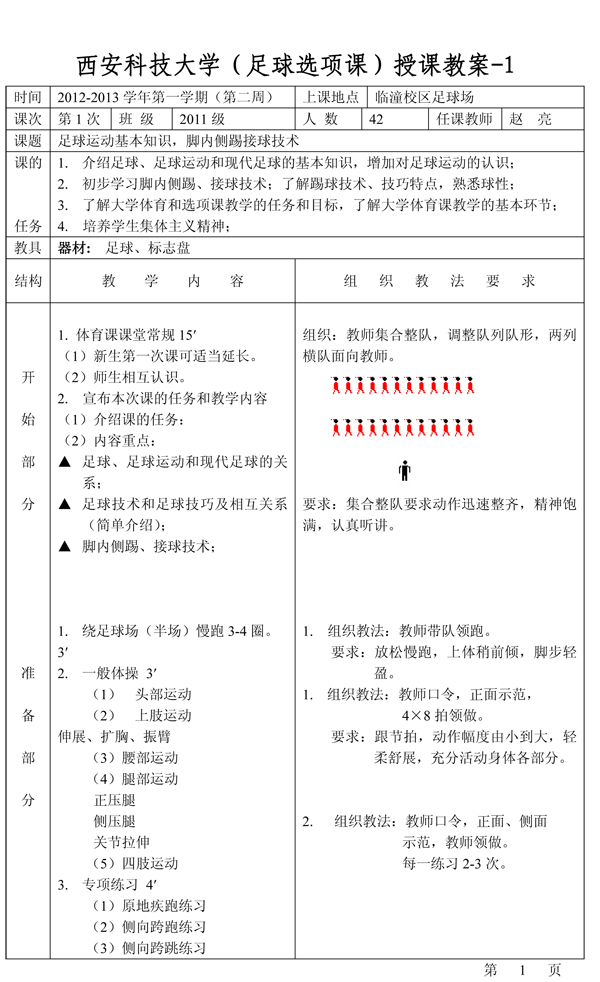 西安科技大學(xué)趙亮《足球選項(xiàng)課》教案(選)