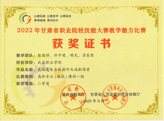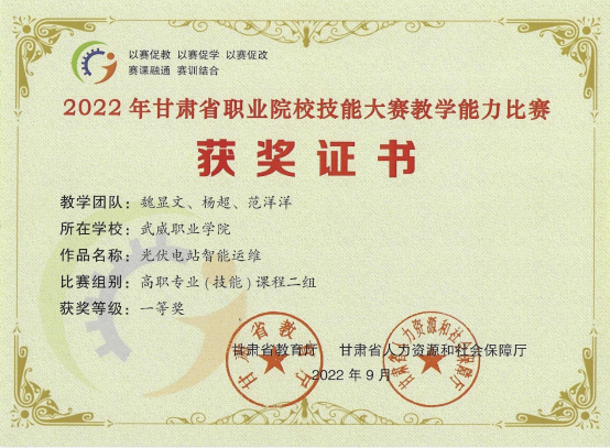 2022年中科低碳新能源技術(shù)共有20名教師參加甘肅省職業(yè)院校技能大賽教學(xué)能力比賽,獲得省級(jí)一等獎(jiǎng)1項(xiàng),二等獎(jiǎng)2項(xiàng),三等獎(jiǎng)2項(xiàng)。