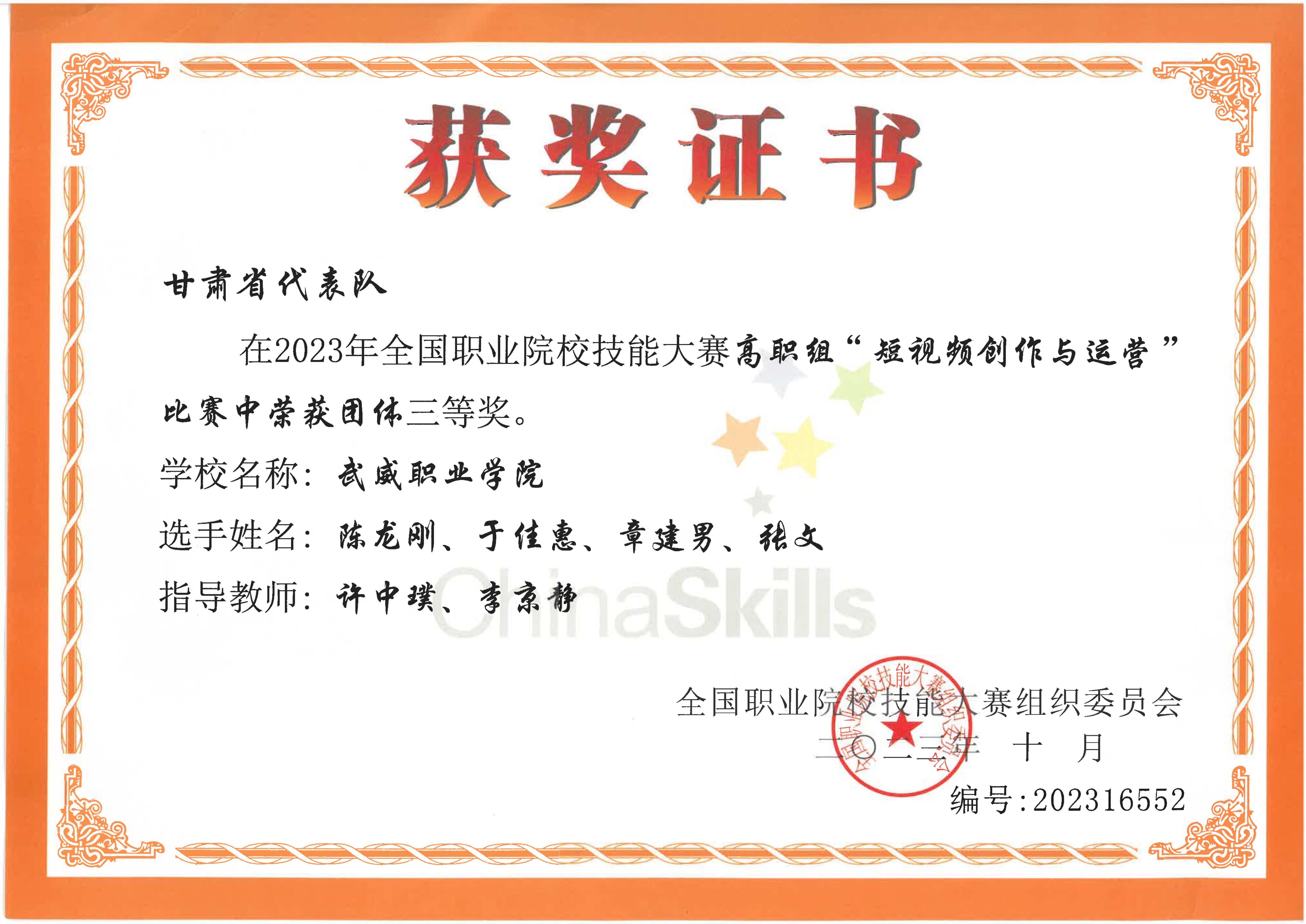 學(xué)生獲2023年全國(guó)職業(yè)院校技能大賽高職組短視頻創(chuàng)作與運(yùn)營(yíng)三等獎(jiǎng)