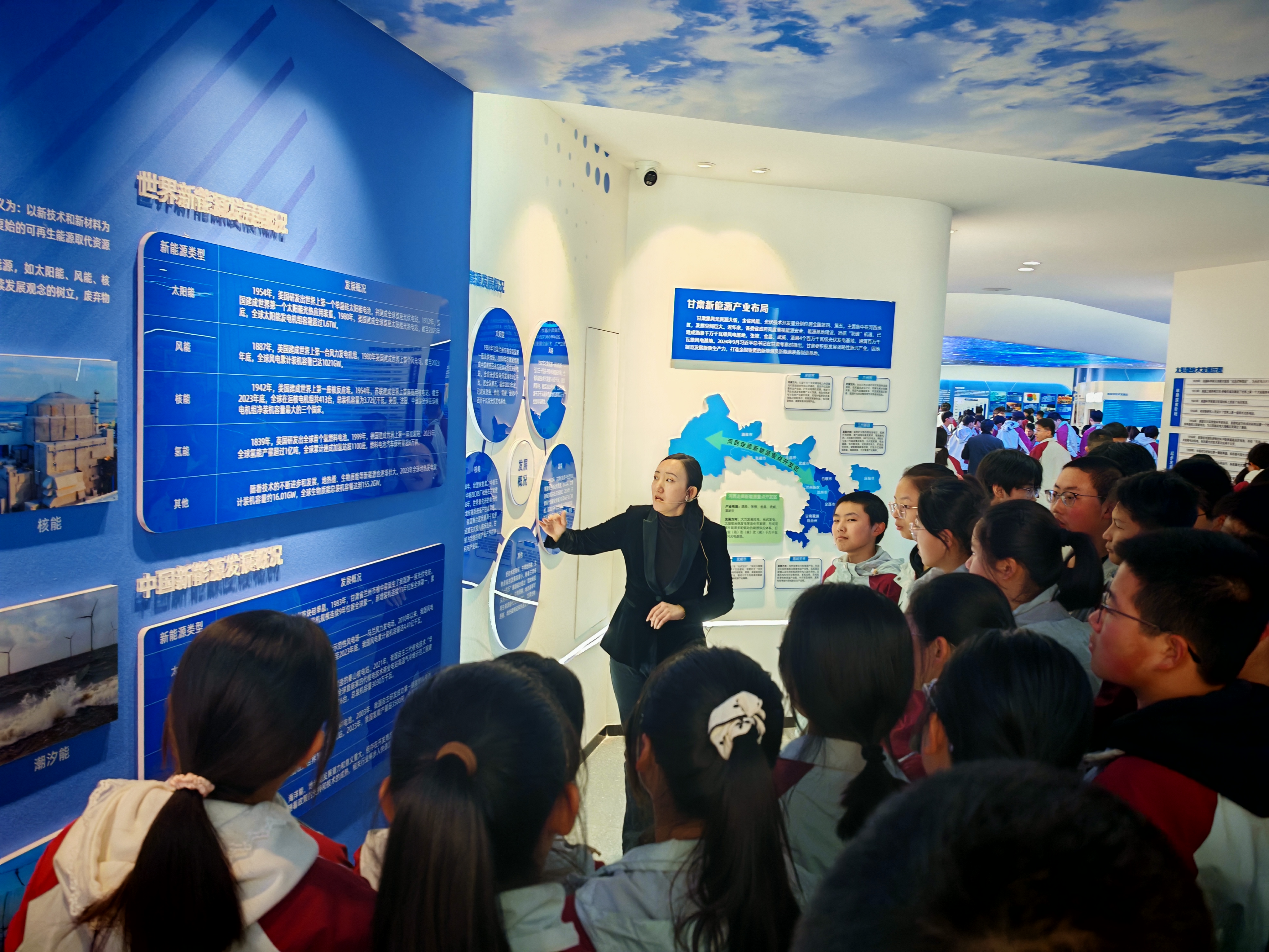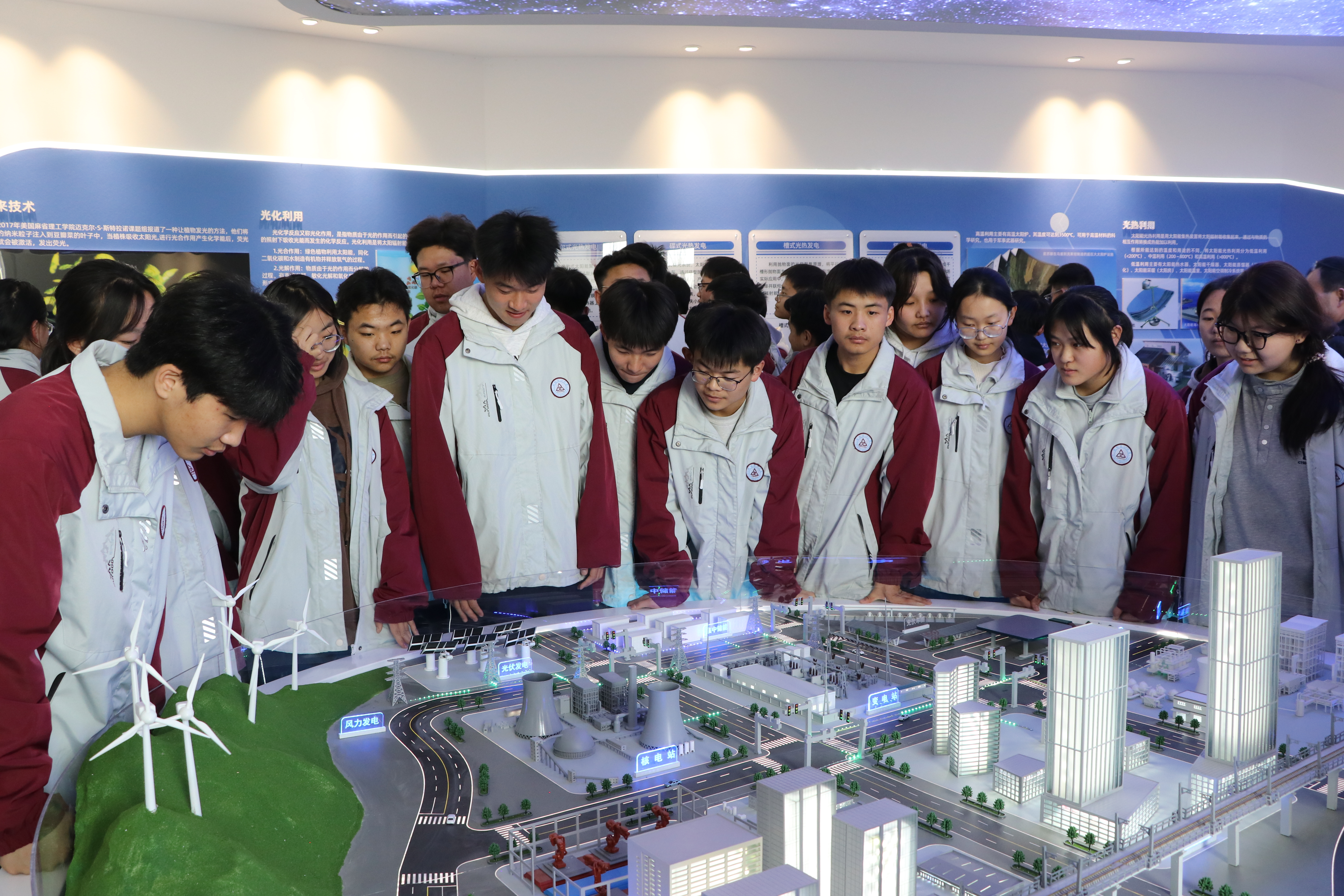 參觀活動中,同學們興致勃勃的在“新能源科技館”中探索新能源的奧秘,體驗參觀了光伏發(fā)電應用、核能應用、風能應用、氫能應用等并觀看了多能互補沙盤演示。同學們在活動中觸摸科技,感受科技的無窮魅力,從而在心田播下科技之種,放飛科技成才夢想。