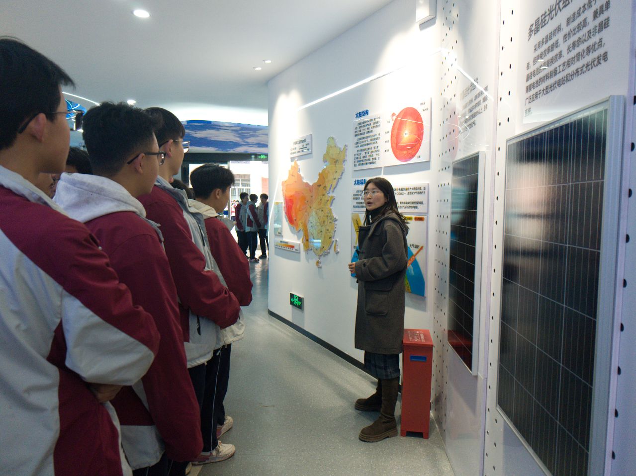 在新能源科技館講解教師講解下,學生們一邊聽一邊體驗觀摩。他們時而激烈討論其科學原理,時而著迷研究模型原理構造,久久駐足觀看,流連忘返,可謂大飽眼福。