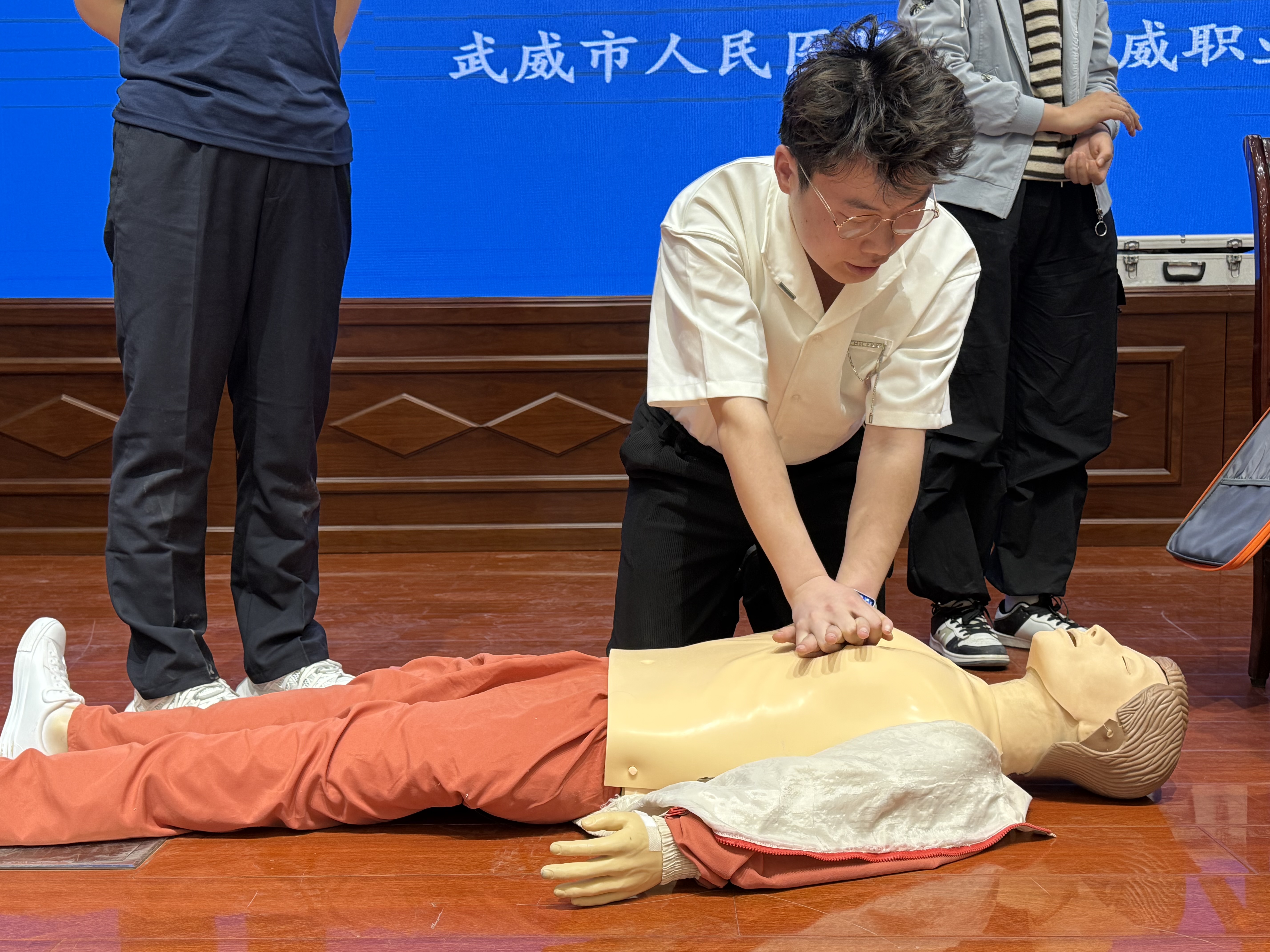為普及急救知識,提升學生應急救護能力,4月17日下午,校團委聯(lián)合武威市人民醫(yī)院在學校菁英廳舉辦“關(guān)愛生命 救在身邊”專題培訓,200余名學生參與學習。活動通過“理論+實操”形式,系統(tǒng)教授學生心肺復蘇、氣道異物急救等技能,助力平安校園建設。