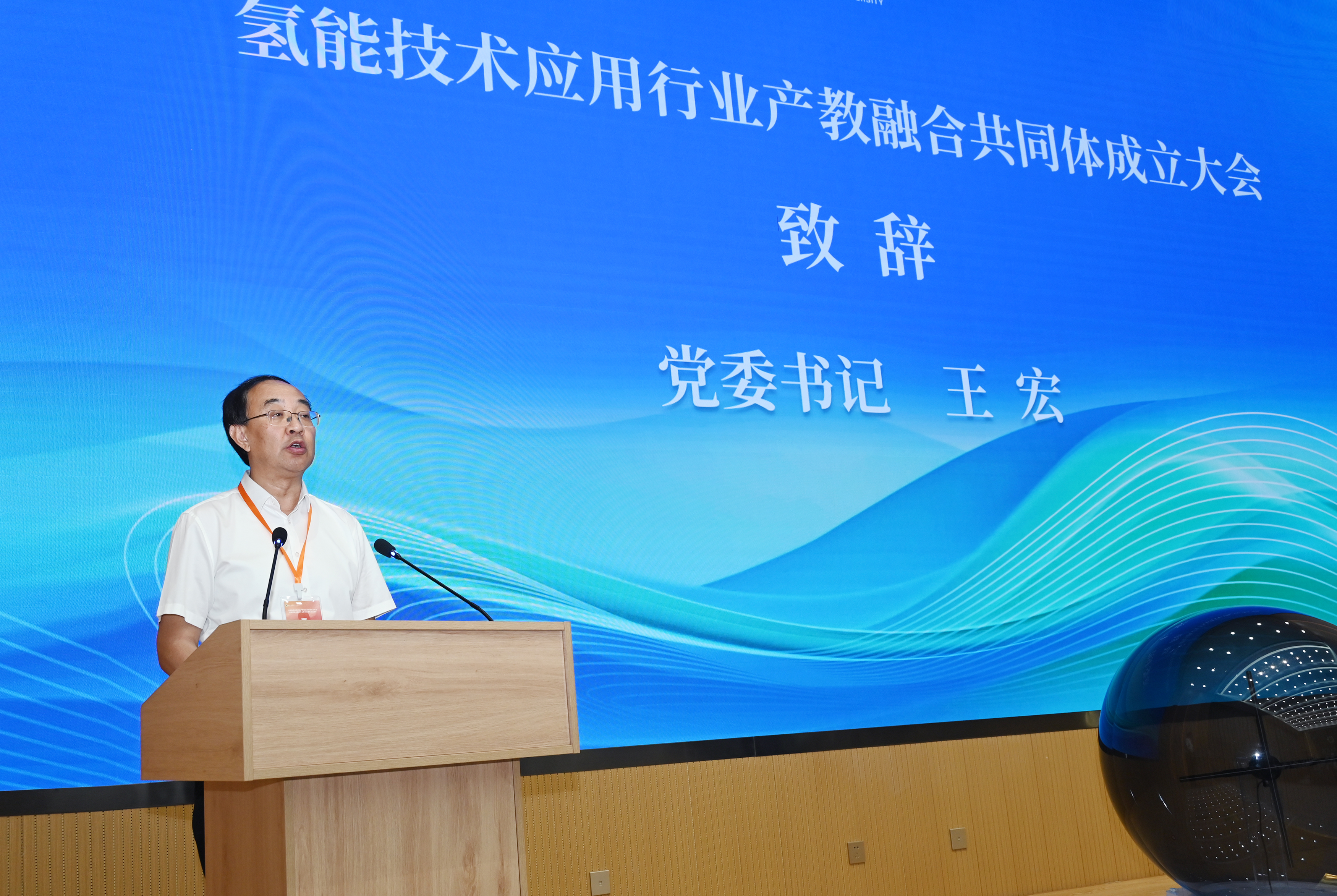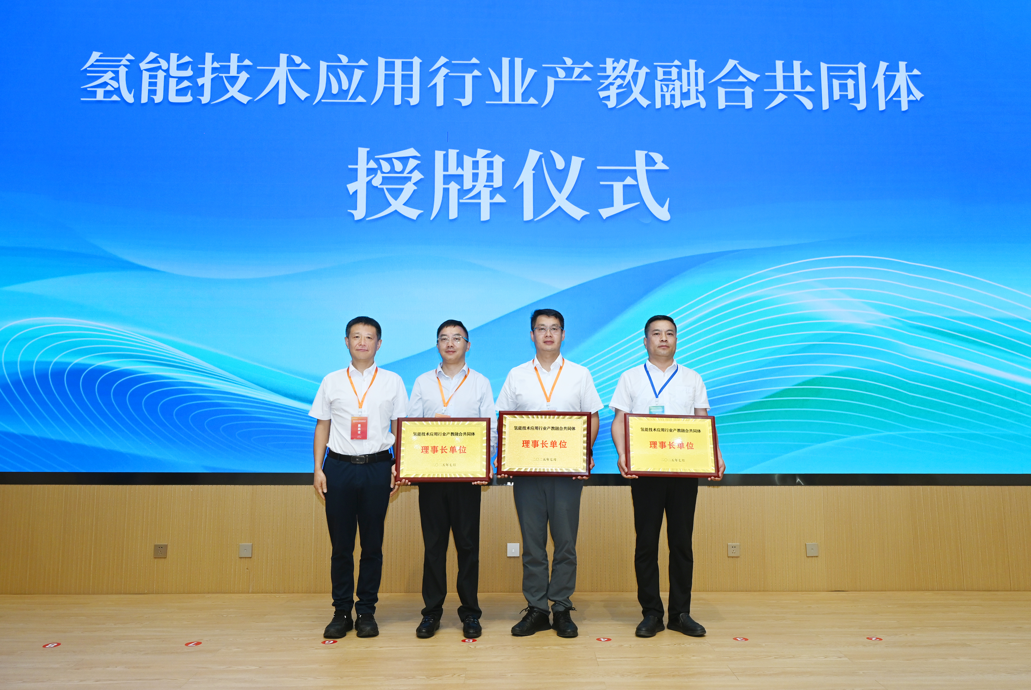 啟動儀式上,與會領(lǐng)導(dǎo)共同點亮啟動球,宣布氫能技術(shù)應(yīng)用行業(yè)產(chǎn)教融合共同體正式成立。大會公布了共同體理事會成員單位名單,并為理事長單位、副理事長單位授牌。