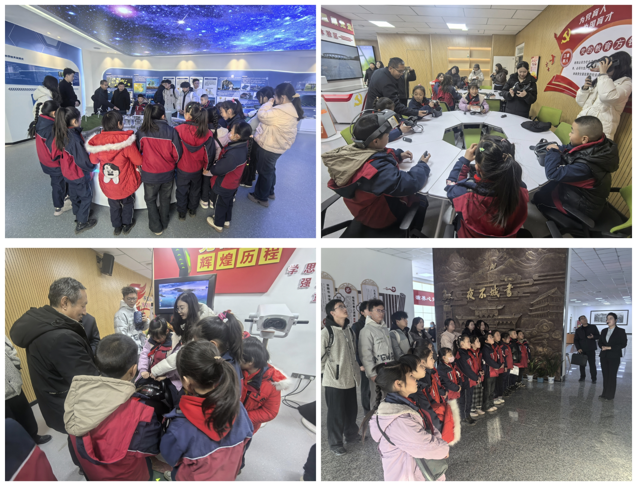 共建簽約儀式后,學(xué)生們參觀了學(xué)校圖書(shū)館、新能源科技館、課程思政教學(xué)研究示范中心等場(chǎng)館。孩子們穿梭于書(shū)香四溢的閱覽區(qū),駐足于各種先進(jìn)的模型與互動(dòng)裝置前,直觀感受VR技術(shù)賦能思政課堂的創(chuàng)新魅力,眼神中充滿(mǎn)了對(duì)知識(shí)的渴望與探索,這次參觀不僅是一次校園環(huán)境體驗(yàn),更是一次深刻的“潤(rùn)物細(xì)無(wú)聲”思政教育,在孩子們心中播下了求知與創(chuàng)新的種子。