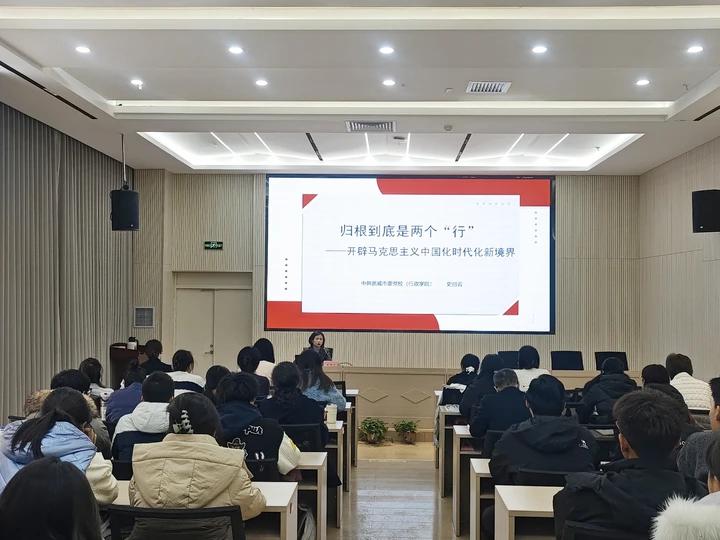 教學觀摩活動以“歸根到底是兩個行——開辟馬克思主義中國化時代化新境界”為題,從“真理之光:馬克思主義行”“實踐之行:中國化時代化的馬克思主義行”“復興之路:不斷開辟馬克思主義中國化時代化新境界”三部分展開講述,她從“兩個行”這一重大論斷的理論溯源、時代背景與核心要義切入,結(jié)合新時代以來的偉大實踐與歷史性變革,深刻揭示了中國共產(chǎn)黨為什么能、中國特色社會主義為什么好的理論邏輯與實踐密碼,生動回答中國之問、世界之問、人民之問、時代之問,實現(xiàn)了馬克思主義中國化時代化新的飛躍。她強調(diào),“兩個行”是相互貫通、有機統(tǒng)一的整體,開辟馬克思主義中國化時代化新境界,必須始終堅持“兩個行”的根本遵循,在實踐中不斷推進理論創(chuàng)新,并用發(fā)展著的理論指導新的實踐。