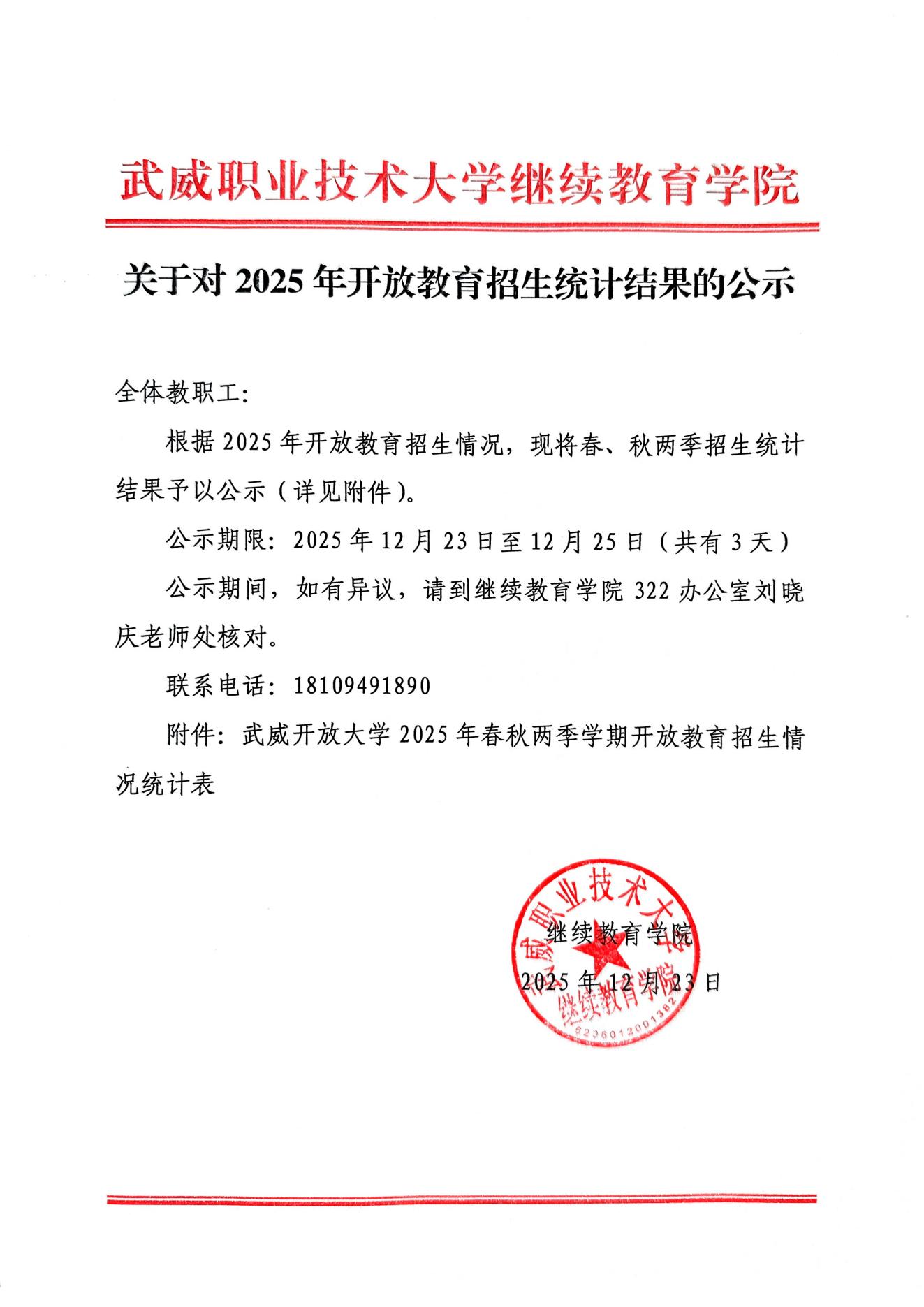 關于對2025年開放教育招生統(tǒng)計結果的公示