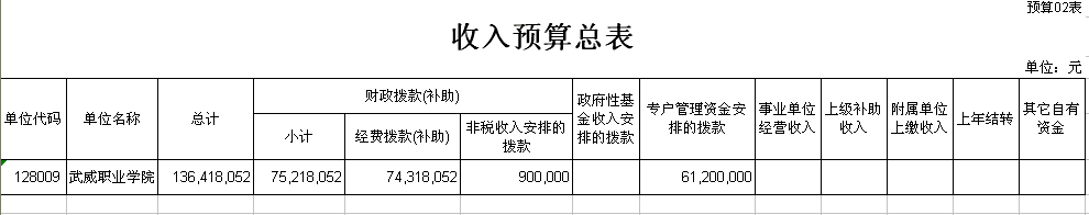 根據(jù)《中華人民共和國預算法》、《中華人民共和國政府信息公開條例》和《市財政局關于進一步做好預決算公開工作的通知》等有關規(guī)定和要求,現(xiàn)將武威職業(yè)學院部門預算和“三公”經(jīng)費預算予以公開如下: