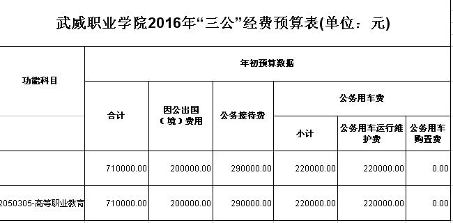 武威職業(yè)學院2016年部門預算和“三公”經(jīng)費預算公開