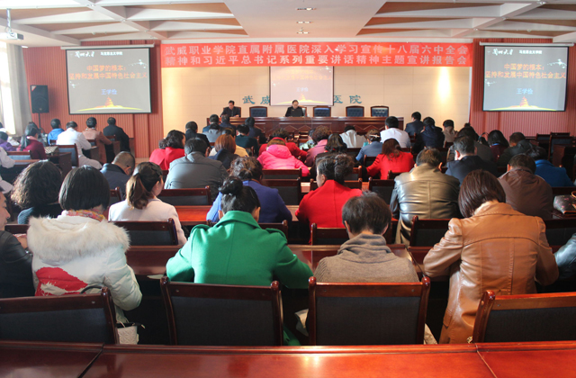 為深入學習宣傳貫徹黨的十八大精神,全面貫徹黨的教育方針,圍繞立德樹人根本任務,深入開展中國特色社會主義宣傳教育。10月29日下午,醫(yī)院邀請?zhí)m州大學教授、博士生導師王學儉來我院進行“深入學習宣傳十八屆六中學會精神和習近平總書記系列重要講話精神主題宣講報告會”,院領導、中層干部和全體黨員在內科樓七樓會議室認真聽取了報告。