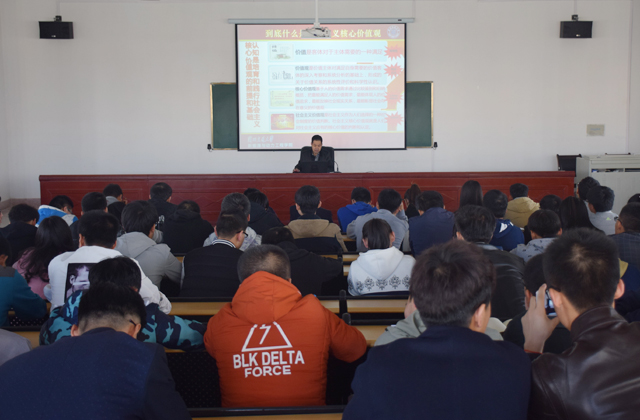 翟存祥從社會主義核心價值觀的時代背景、社會主義核心價值觀的頂層設(shè)計、核心價值觀與核心價值體系的關(guān)系、社會主義核心價值觀的系統(tǒng)培育、社會主義核心價值觀的全面踐行等五個方面,分析了中國共產(chǎn)黨價值取向的發(fā)展歷程、培育和踐行社會主義核心價值觀的重要性和迫切性,培育和踐行社會主義核心價值觀對實現(xiàn)中國夢的重要現(xiàn)實意義和深遠歷史意義,以及培育和踐行社會主義核心價值觀的措施等問題,并對為什么要培育和踐行、怎么培育和踐行作了系統(tǒng)和精彩的解讀。翟存祥指出,十八大報告將社會主義核心價值觀凝練為24個字:“富強、民主、文明、和諧;自由、平等、公正、法治;愛國、敬業(yè)、誠信、友善”,從國家、社會、個人三個層面,簡單扼要、簡約樸實、簡潔通俗地提出了社會主義核心價值觀的新表達,也為當今中國社會的核心價值觀構(gòu)建提出了新要求。社會主義核心價值觀既有理論的延續(xù)性,又有現(xiàn)實的針對性;既有目標追求,又有價值導(dǎo)向,還有行為準則,是人心所愿、眾望所歸。翟存祥結(jié)合學(xué)院發(fā)展實際,要求學(xué)生黨員及班團干部從現(xiàn)在做起,從自己做起,努力向上,踐行社會主義核心價值觀,追求有信念,有夢想,有奮斗,有奉獻的人生,讓自己的人生更有意義。