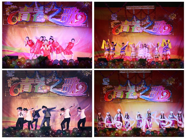 本次晚會(huì)以“青春之歌,歡送畢業(yè)生”為主題,共表演了17個(gè)精彩節(jié)目。晚上7點(diǎn)整,開場(chǎng)舞《倍兒爽》、《小蘋果》為整臺(tái)晚會(huì)拉開了帷幕。在晚會(huì)上,《格桑拉》、《吉祥謠》及《青春踢踏》等少數(shù)民族舞蹈,體現(xiàn)了五十六個(gè)民族大團(tuán)結(jié),互相共融的感情;《感恩的心》表達(dá)了學(xué)生們對(duì)老師一年來孜孜不倦、淳淳教誨的感恩之情;《天下父母心》表達(dá)了對(duì)父母的養(yǎng)育之恩的感謝;舞蹈《驚鴻舞》和《The boys》等給觀眾帶來了別樣的風(fēng)情,展現(xiàn)出青年學(xué)子活力青春;大型舞蹈《致那些年逝去的青春》和《夢(mèng)回敦煌》帶給觀眾視覺盛宴;舞蹈《串燒》結(jié)合了幾首近幾年流行的膾炙人口的歌曲,將不同舞蹈串燒一起。青春現(xiàn)代舞《Expect》將整個(gè)晚會(huì)推向高潮。